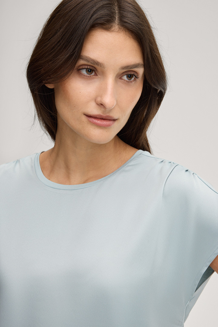 Featuring a feminine silhouette with a round neckline and short cap sleeves, the Tancy T-shirt in a viscose blend looks stylish with both trousers and skirts – perfect for mixing and matching for any occasion. Piped hems lend an elegant finish to the design.