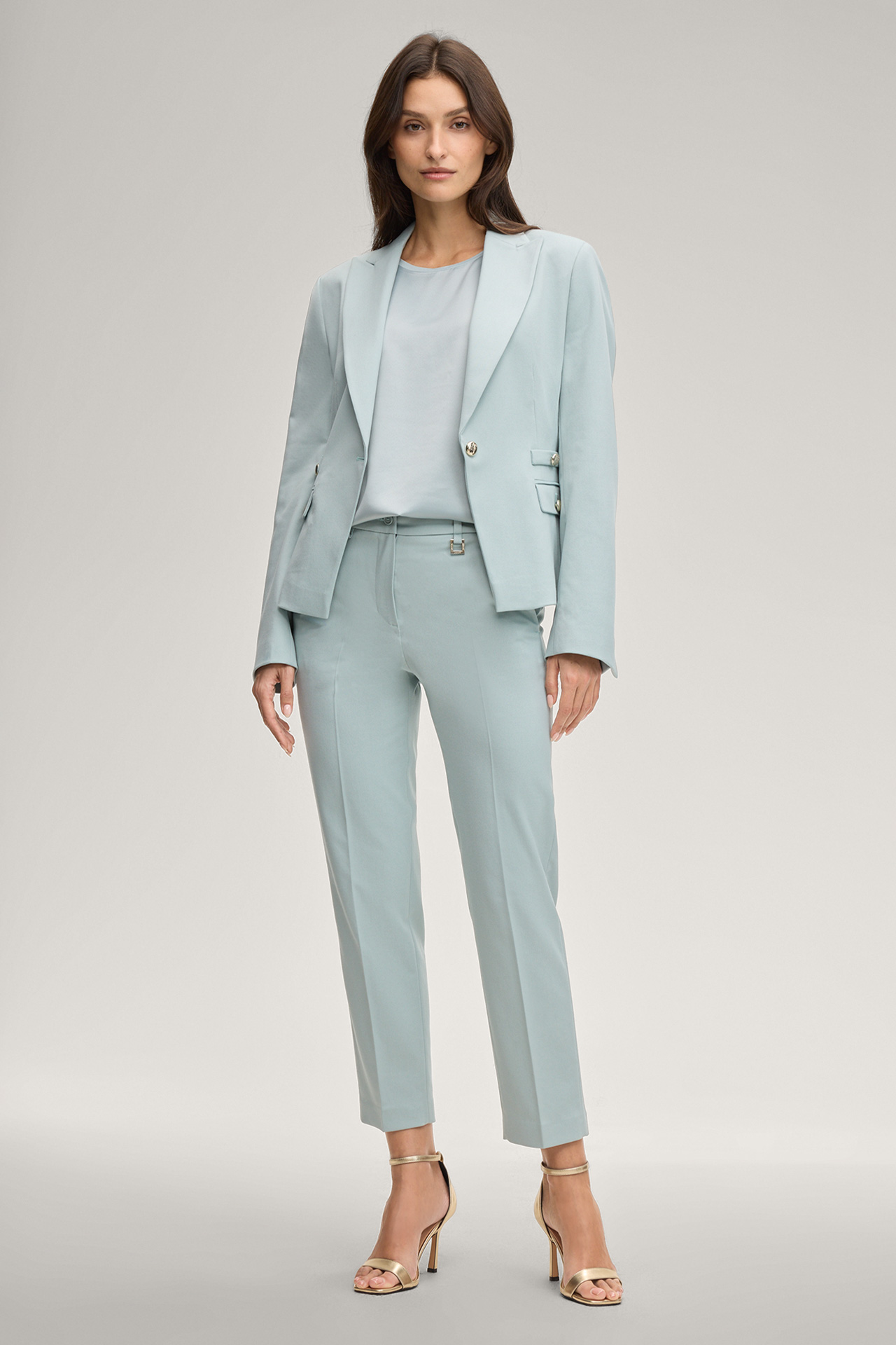 The model is wearing a European size 36 and has the following measurements - height: 180 cm, chest: 83 cm, waist: 60 cm and hip: 90 cm.