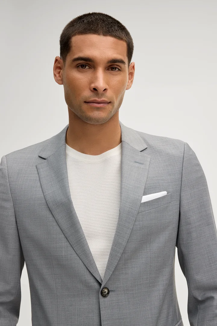In der extra-schmalen Silhouette überzeugt der Anzug Damon Gun als stilvoller Allrounder für formelle Anlässe und gehobene Events. Die Wollmischung bietet angenehmen Tragekomfort. Für ein flexibles Upgrade sorgen doppelte Bewegungsschlitze für das Sakko. Knöpfbare Leistengesäßtaschen und ein verdeckter Haken-Zip-Verschluss zeichnen den eleganten Twist der Anzughose aus. Perfekt kombiniert wirkt das Essential mit einem schmalen Hemd.