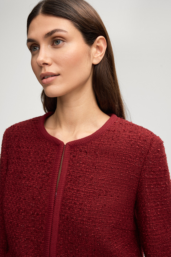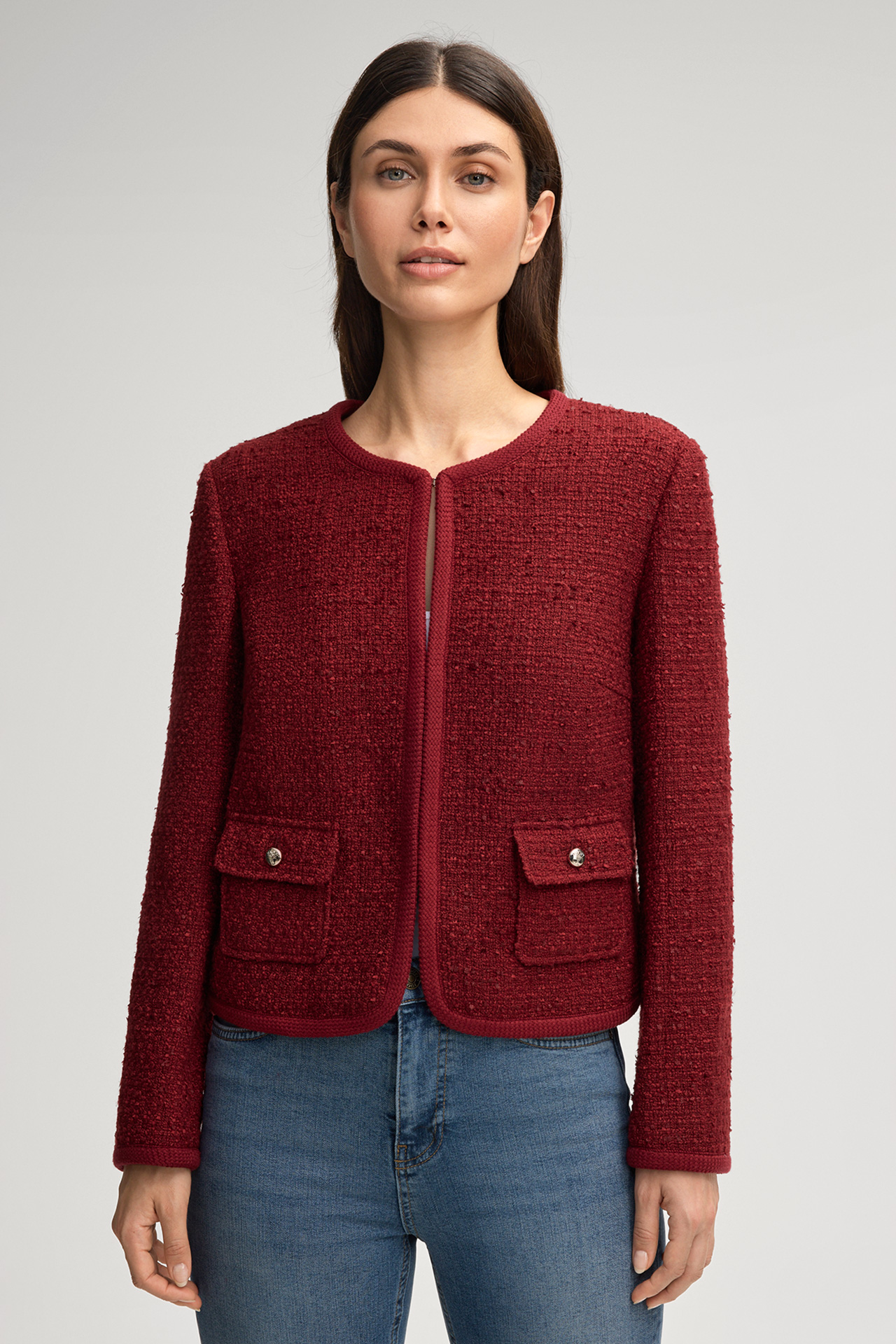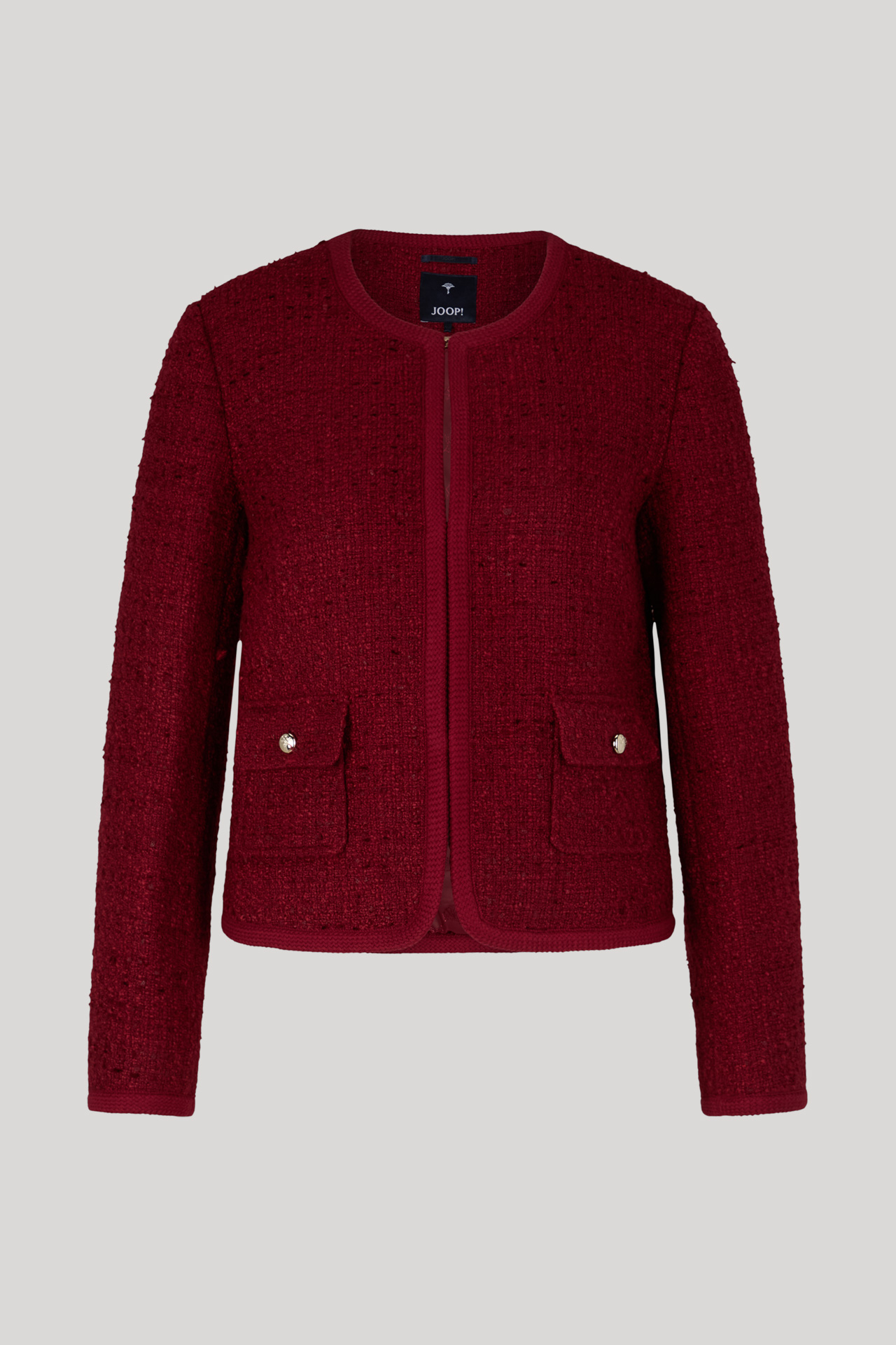 Die Tweed-Qualität zeichnet den Blazer Joella als stilvolles Piece für verschiedene Looks aus. Für den klassischen Twist sorgen aufgesetzte Pattentaschen mit Knopf, während der Rundhalsausschnitt als modernes Detail überzeugt. Eine dezente Hakenschließe rundet den Style stimmig ab.