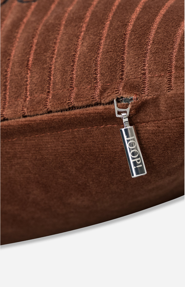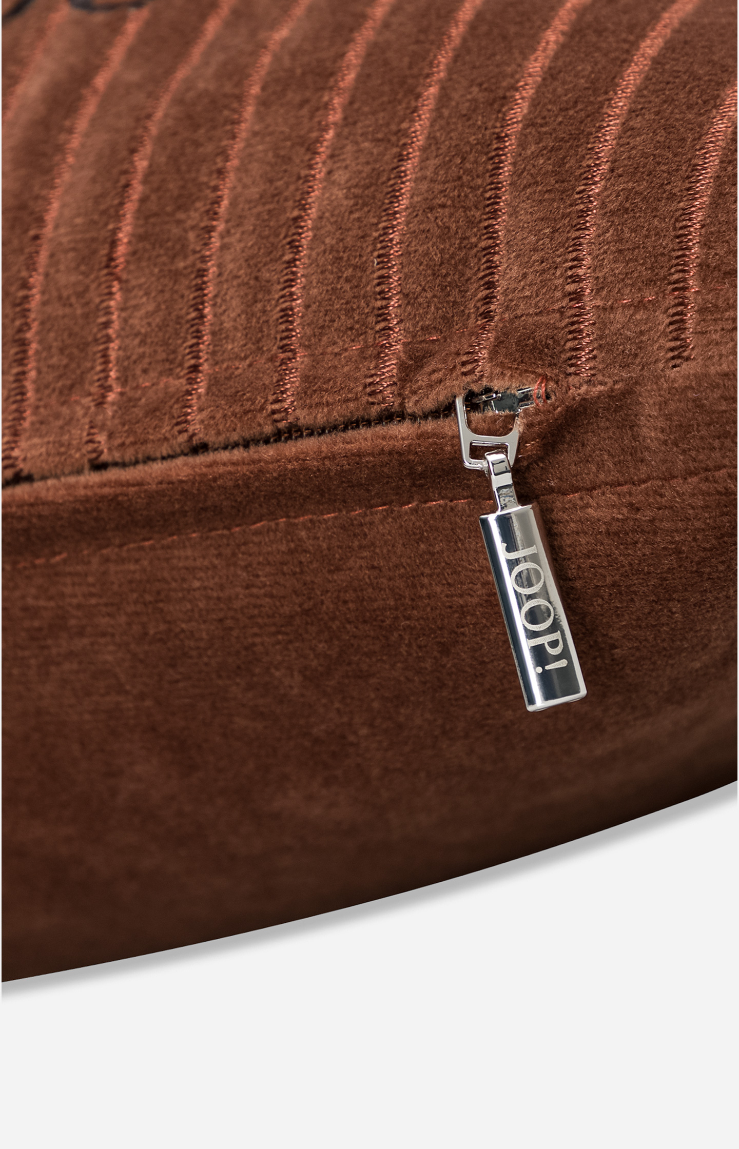 Mit kontrastivem Twist sorgen die Zierkissenhüllen der Kollektion DIVIDED für einen Eyecatcher auf dem Lieblingsmobilar. Ein gesticktes Label, die signaturetypische Flag und geprägte Zipper runden die Essentials ab. Für das edle Design-Update sorgt weicher Samt.