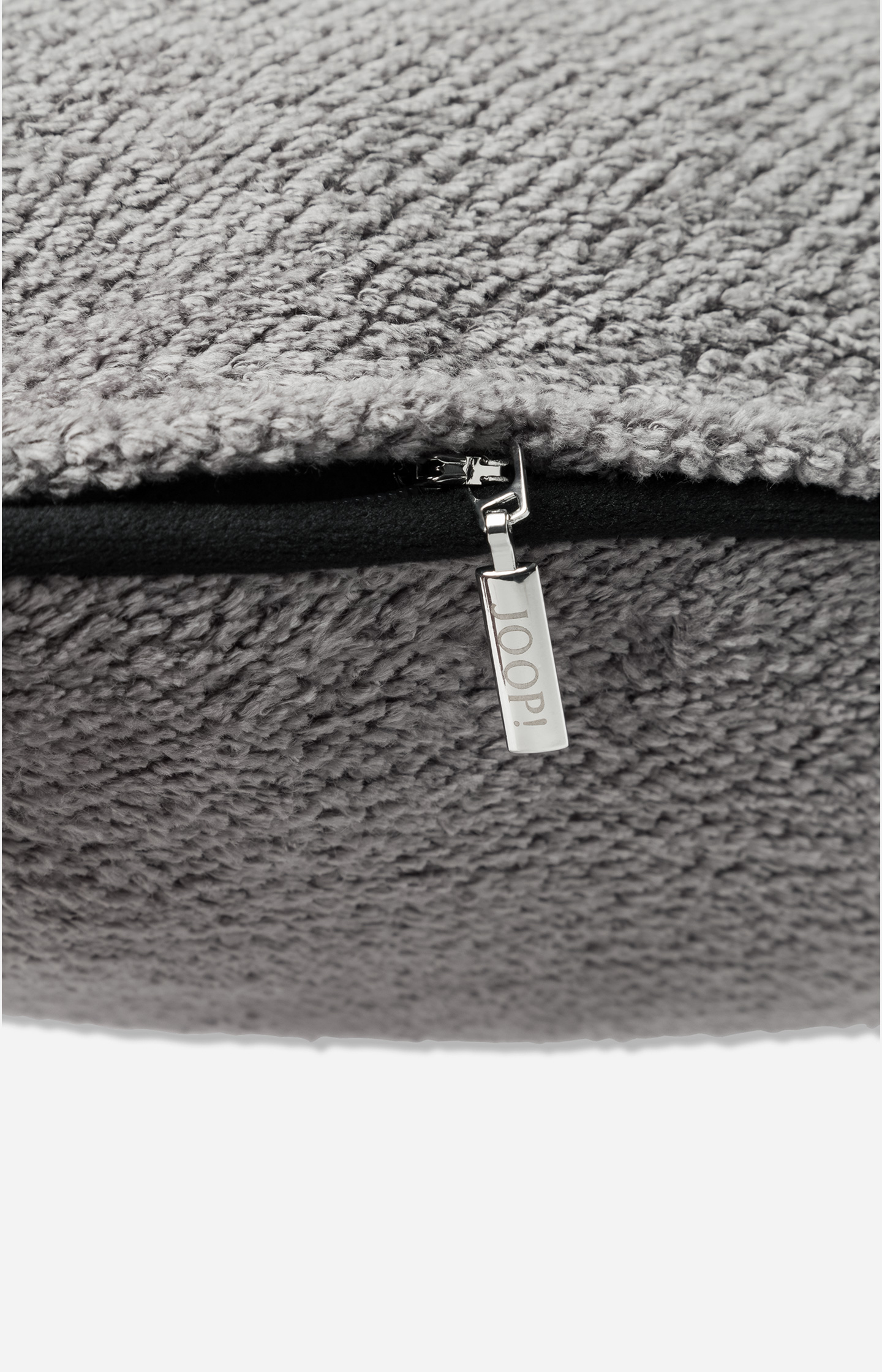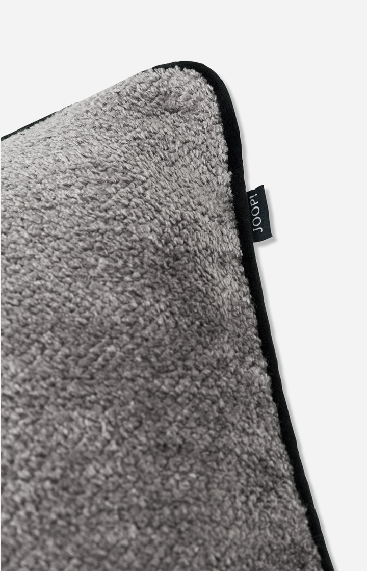 Samtiger Chenille zeichnet das luxuriöse Flair der Zierkissenhülle SIGN aus, die durch eine tonale Paspelierung das moderne Finish erhält. Für einen ikonischen Akzent sorgt der gestickte Label-Schriftzug. Für ein Mix & Match erweisen sich weitere Kissen und Plaids aus Fake-Fur und Samt.