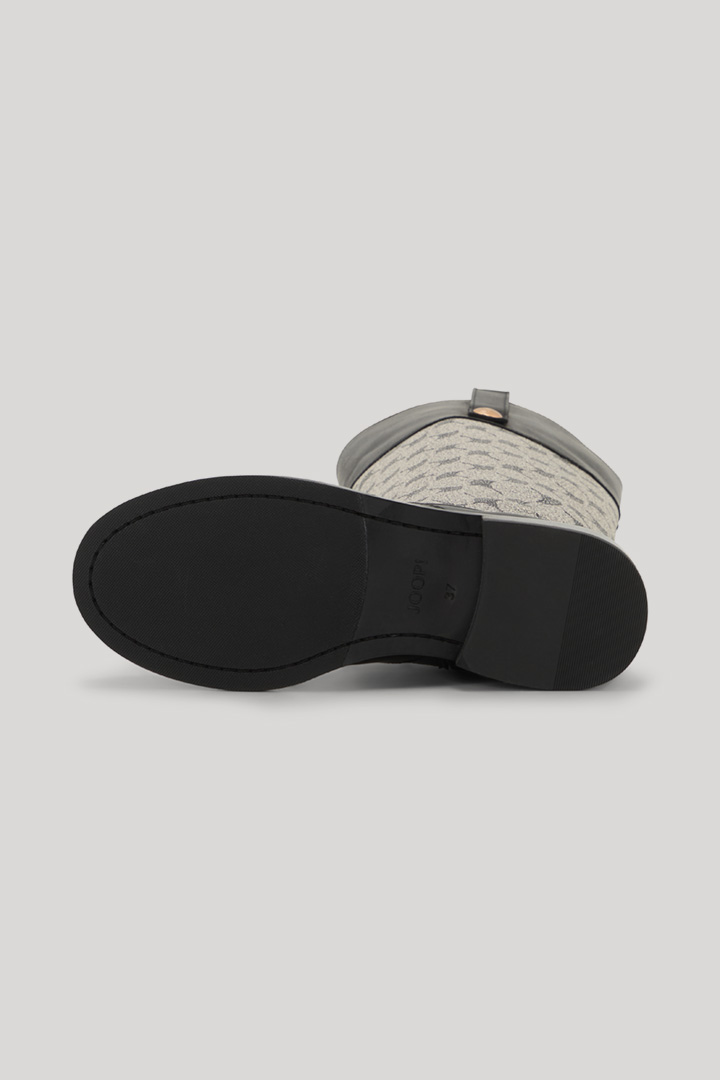 Die hohen Stiefel Mazzolino Misto New Tori begeistern als Signature Pieces, akzentuiert mit Details im Cornflower-Look. Der raffinierte Mix aus Echtleder und Faux-Partien setzt moderne Akzente. Für den komfortablen Twist sorgt der seitliche Zip-Verschluss.