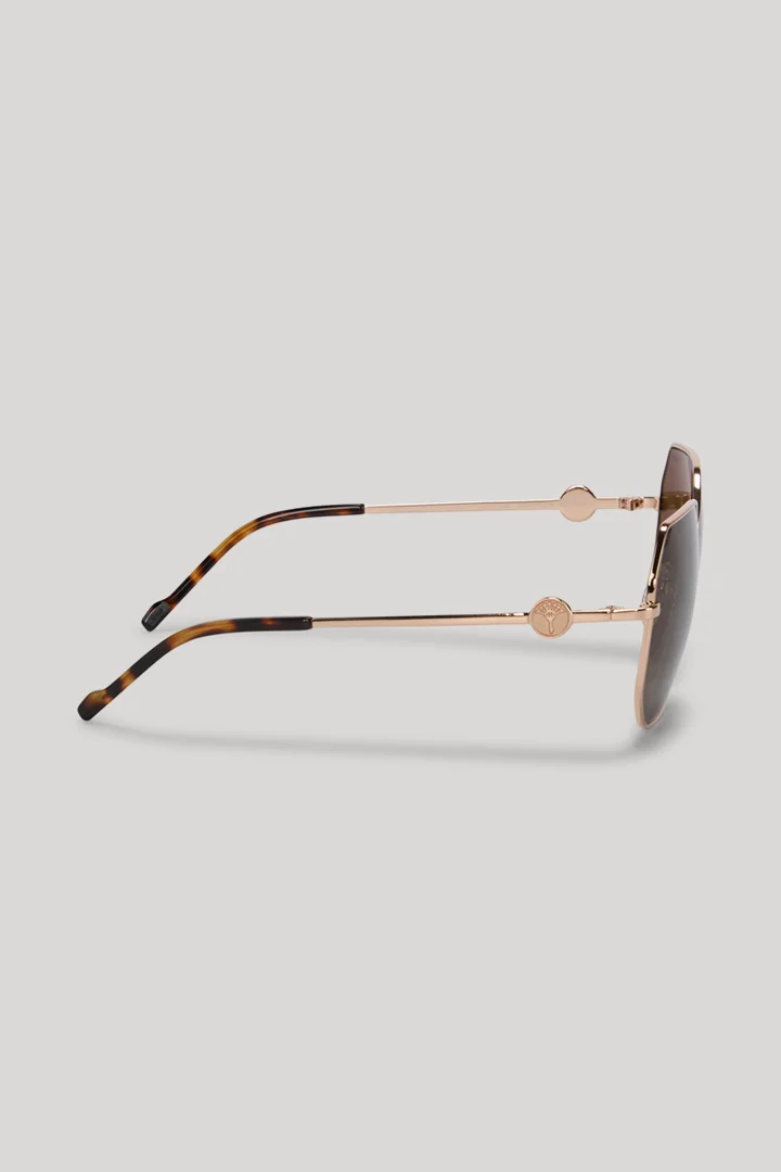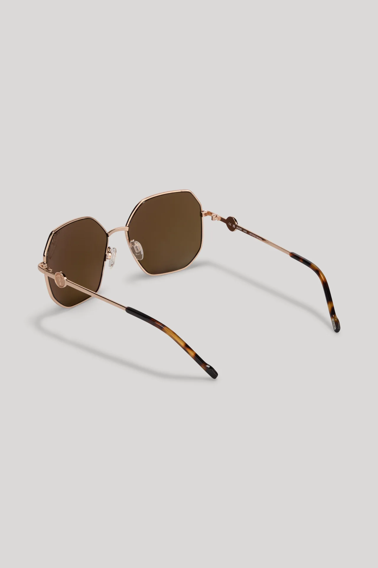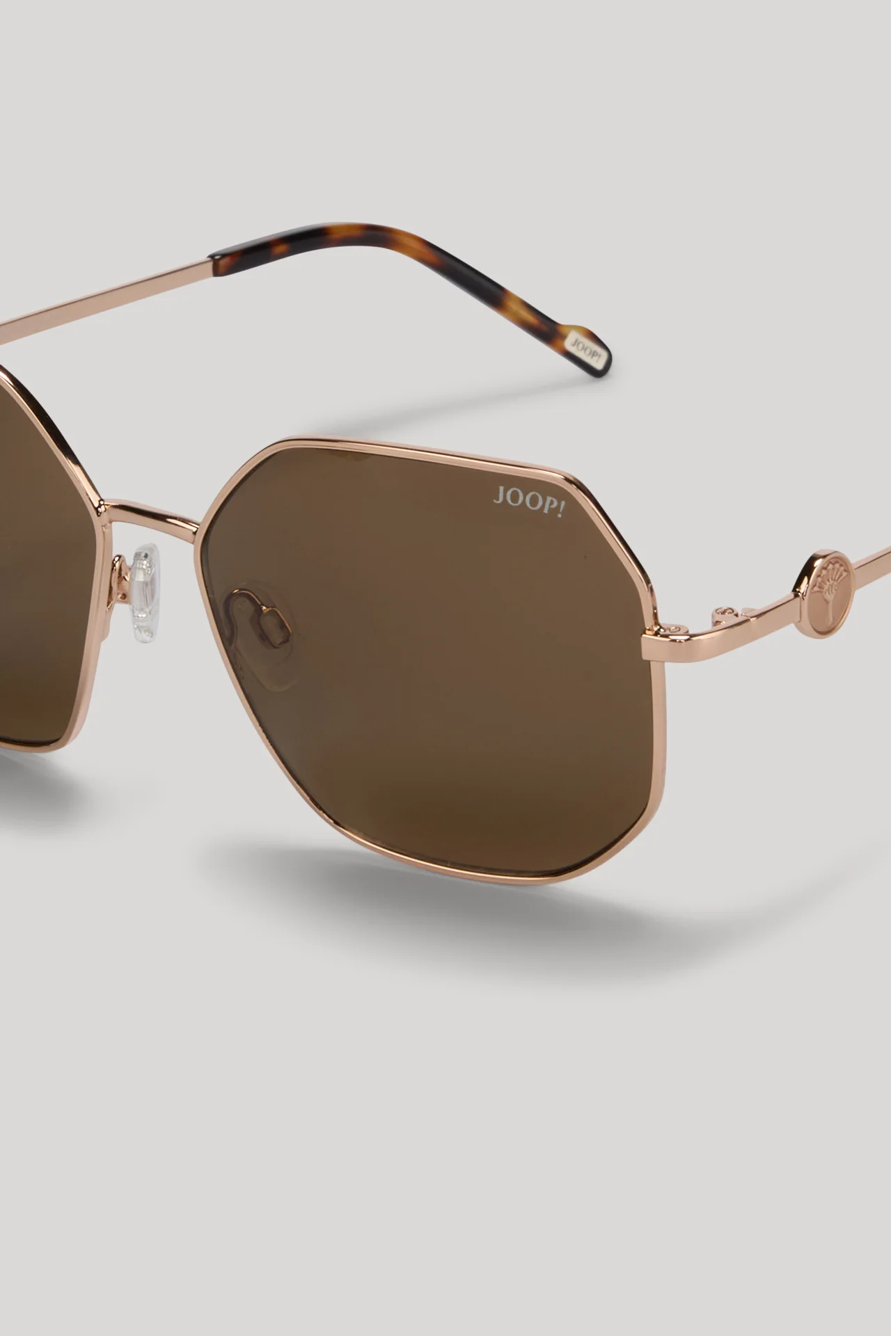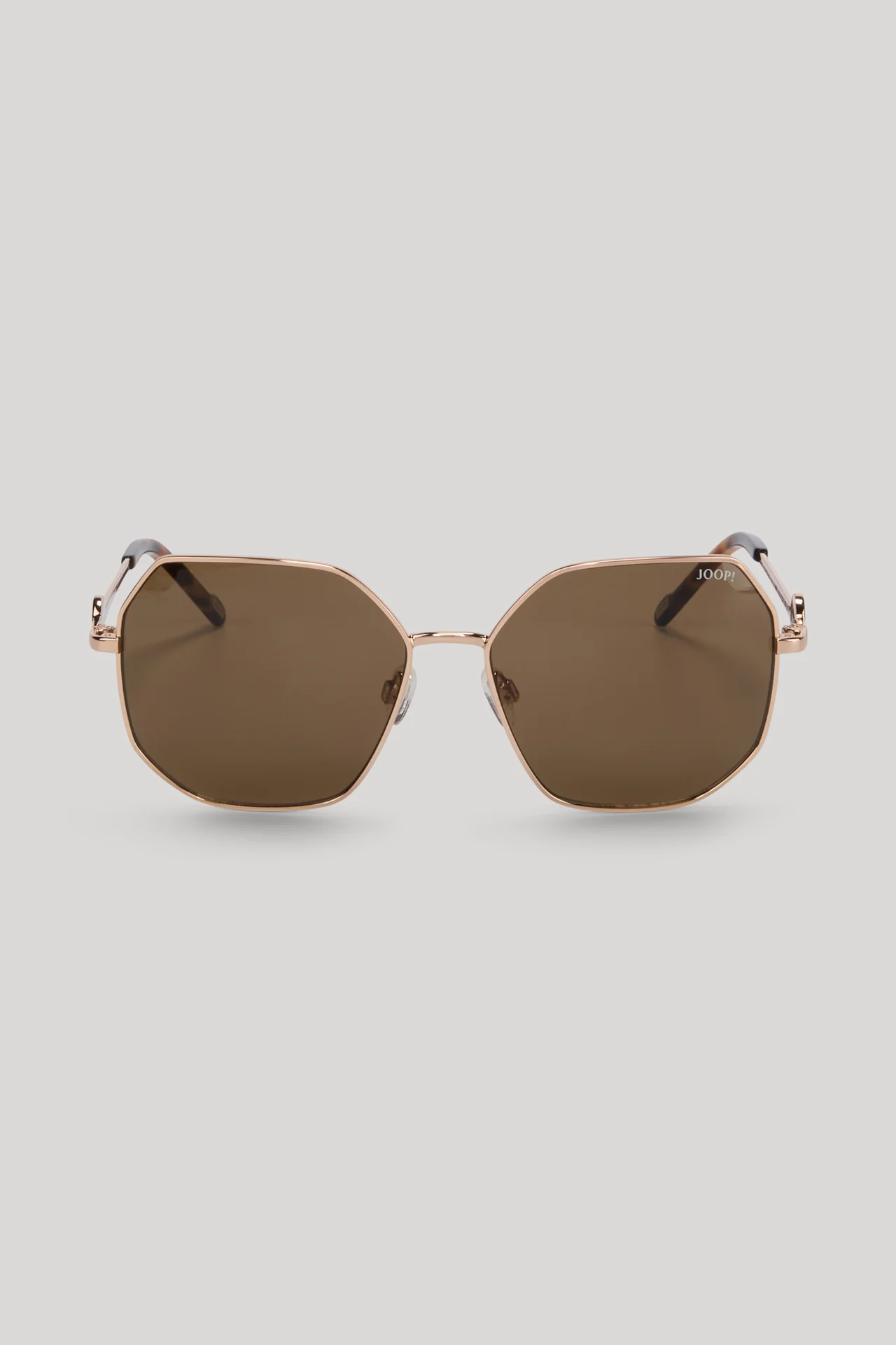 Die Sonnenbrille überzeugt mit schmalem Metall-Rahmen und leicht abgeecktem Format als modernes Highlight-Piece für sonnige Momente. Feine, partiell überzogene Bügel ergänzen das Design, während dezente Cornflower-Reliefs edle Akzente setzen. Für optimalen Schutz vor UV-Strahlen sorgen die Gläser in abgetönter Nylon-Verarbeitung.