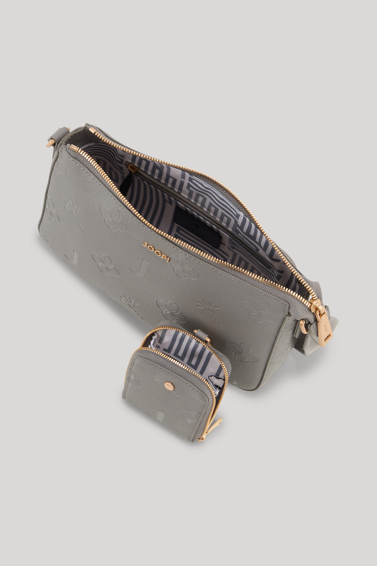 Raffiniert und vielseitig im Styling beeindruckt die Schultertasche Decoro Jasmina aus veganem Leder im Monogramm-Design mit Mini-Pouch. Das Accessoire verfügt über einen längenverstellbaren Schulterriemen sowie einen funktionalen Zip-Verschluss. Ob klassisch oder lässig kombiniert, das Item schenkt dem Outfit den ikonischen Twist.