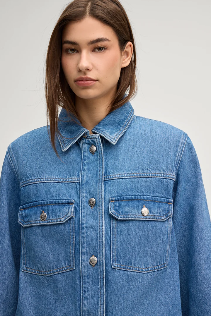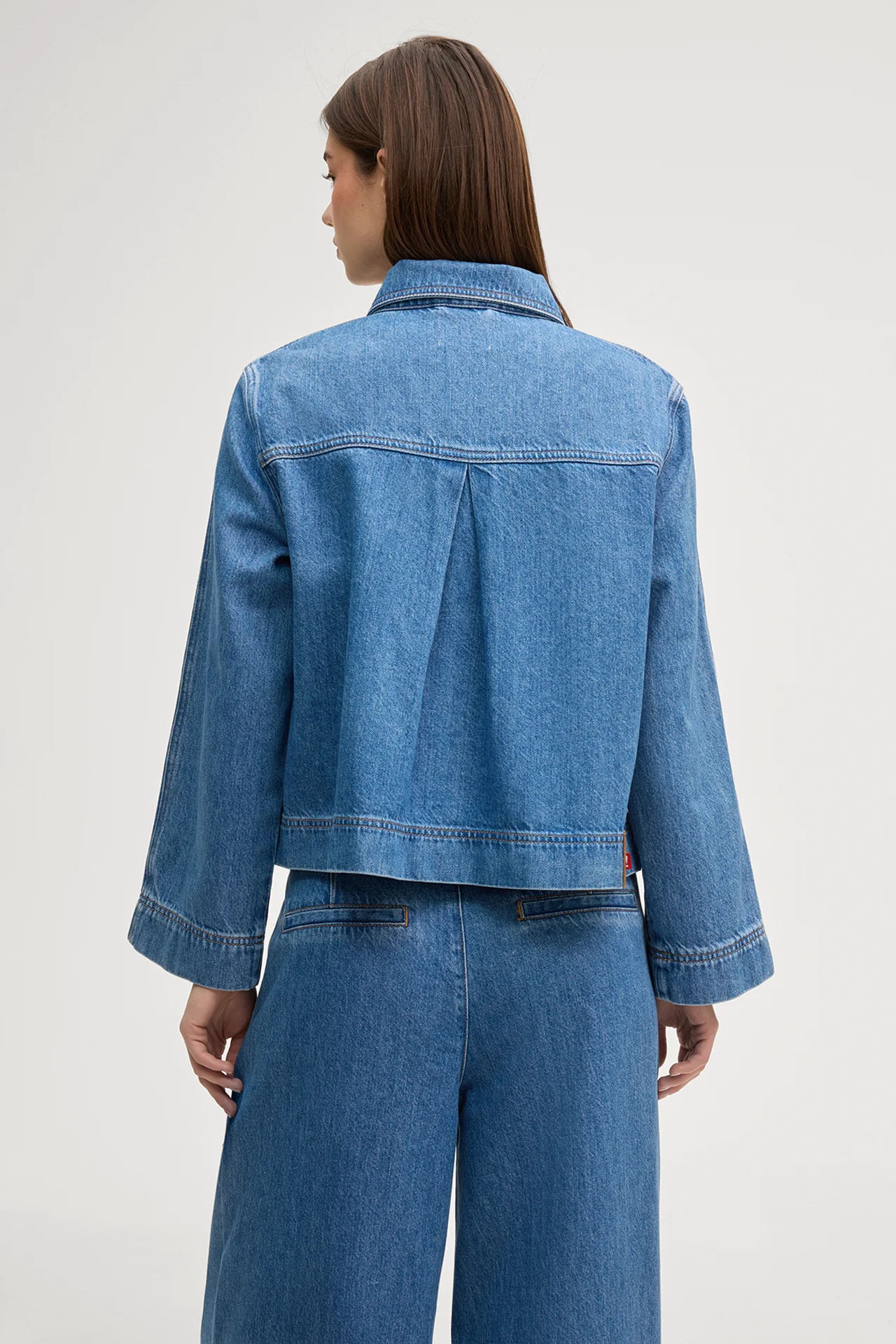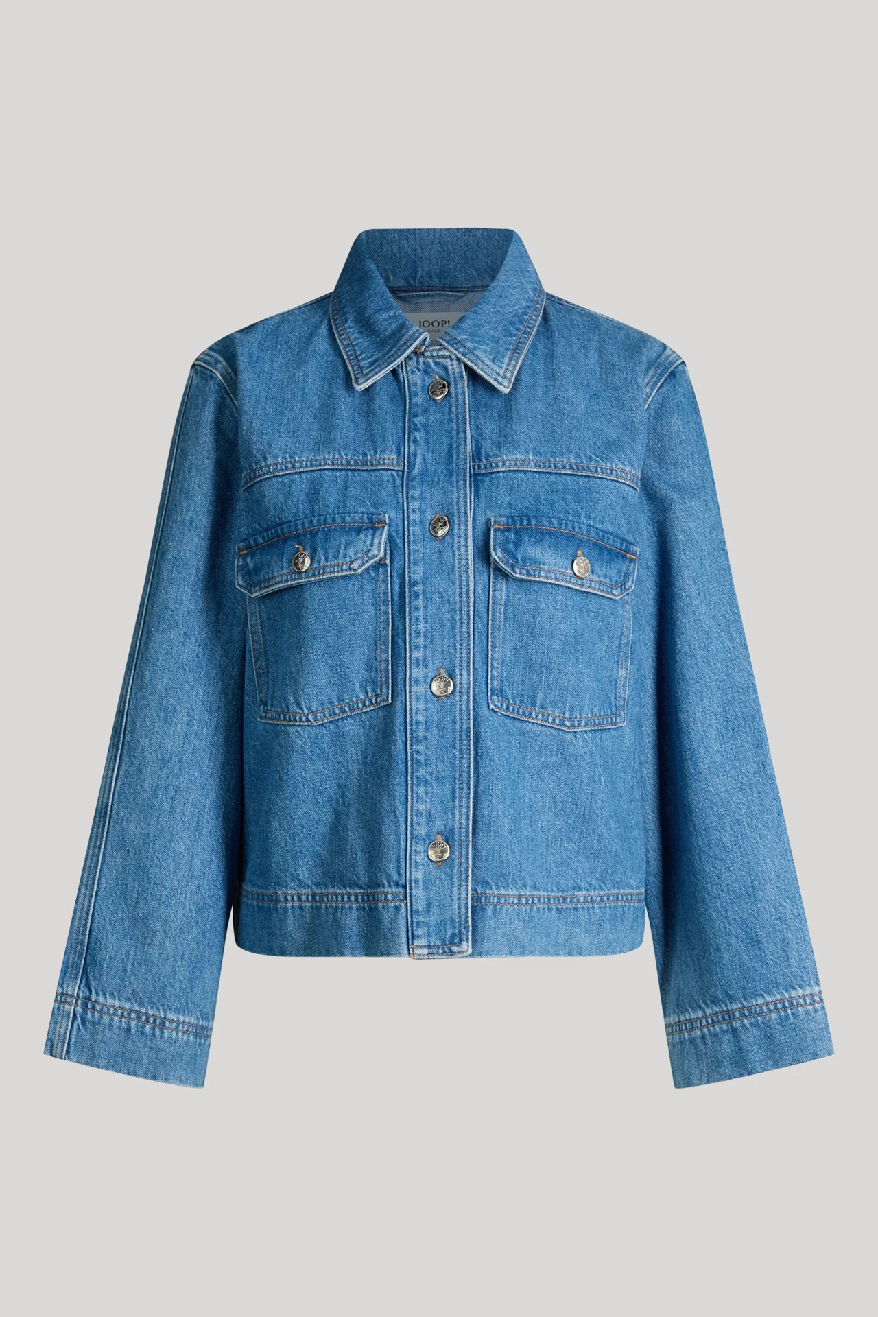 Im femininen Blouson-Stil mit modern verkürzten Ärmeln und rückseitiger Kellerfalte beeindruckt die Jeansjacke Inoa als Favorit für stylishe Looks – wirkungsvoll für Complete-Denim-Outfits. Pattentaschen, klassische Nähte und die logogeprägte Knopfleiste setzen Akzente, ergänzt durch ein ikonisches Patch am Bund.