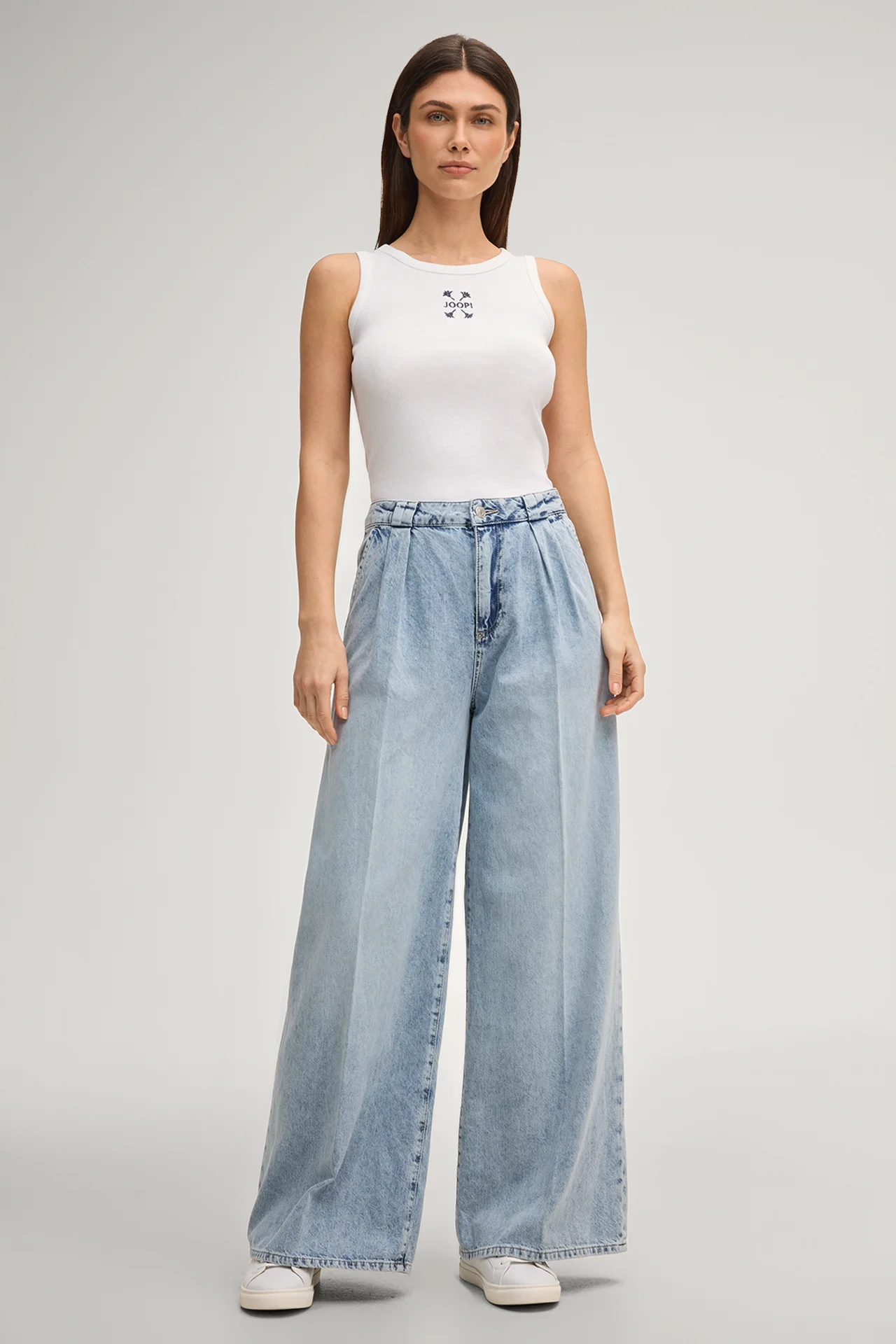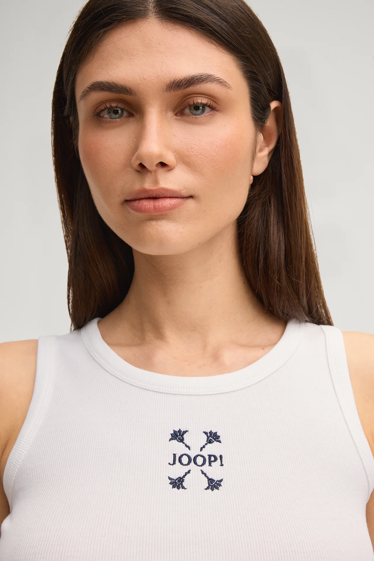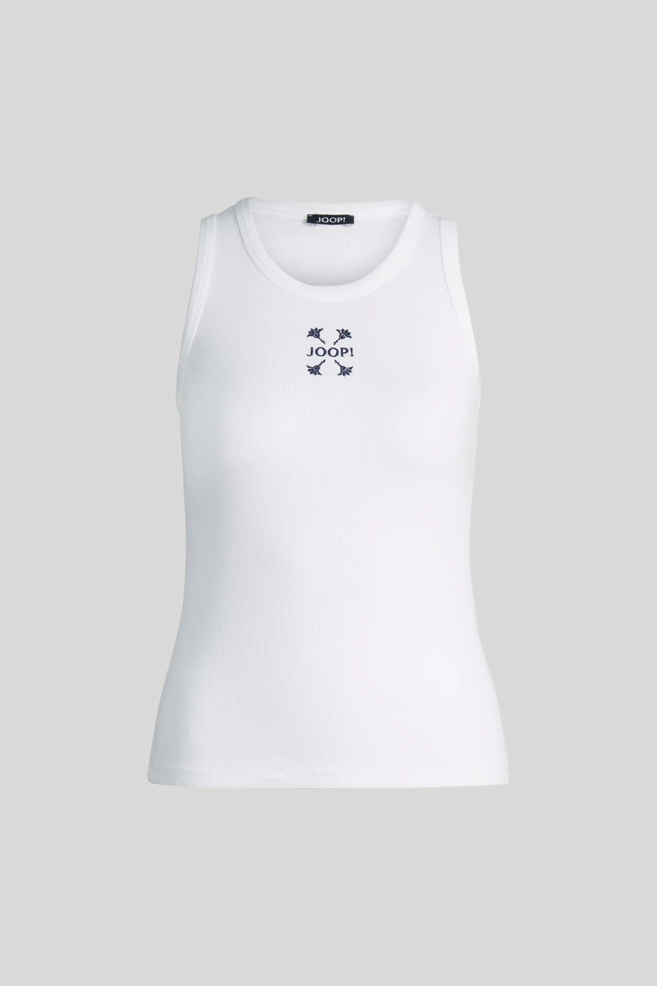 Als Allrounder für moderne Stylings erweist sich das gerippte Top aus stretchiger Baumwolle mit klassischem Rundhalsausschnitt. Einen Signature-Twist verleiht das Front-Stitching im kontrastiven Look.