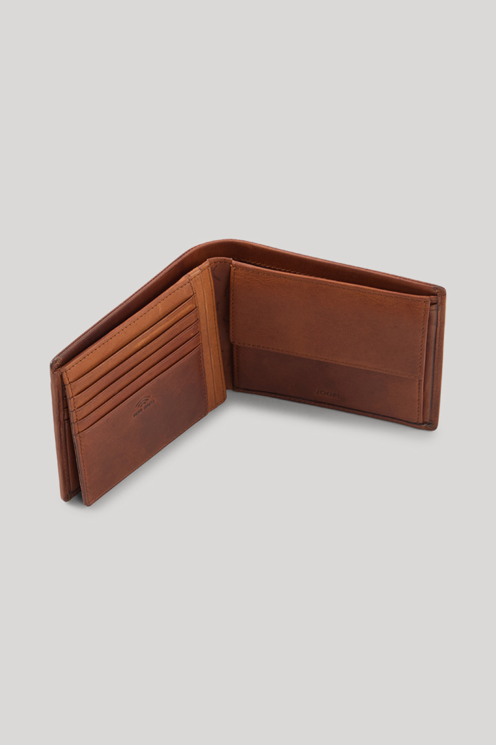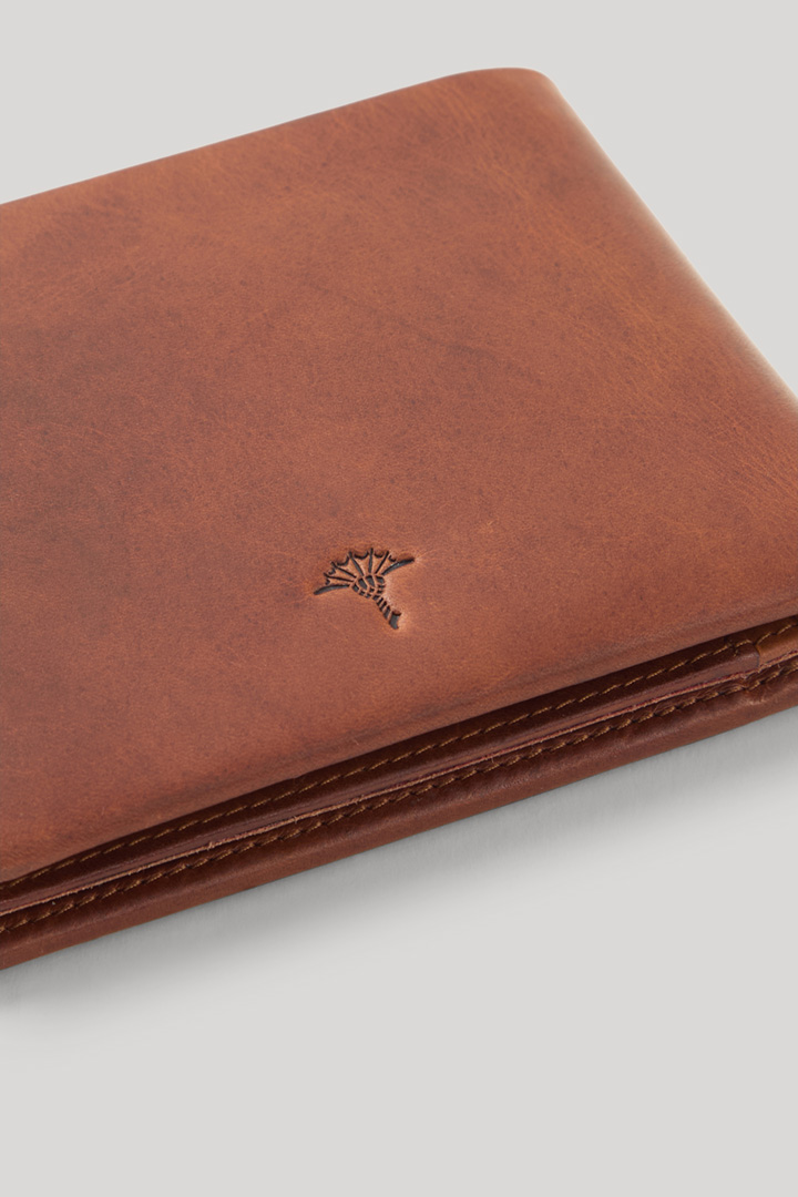 Im cleanen Design begeistert die ausklappbare Geldbörse Cerratano Typhon aus reinem Rindsleder. Feine Labeldetails verleihen moderne Akzente. Für das stimmige Finish sorgt das Inlay mit mehreren Kartenund Steckfächern sowie einem Münzfach mit Druckknopfschließe.