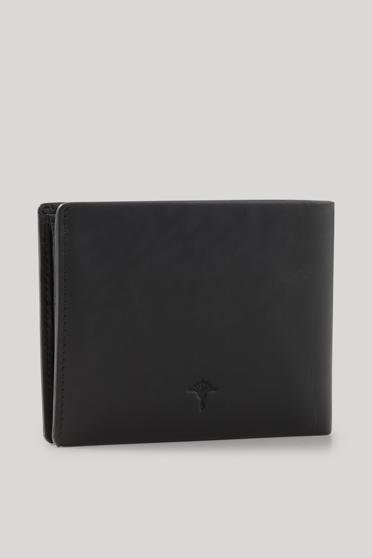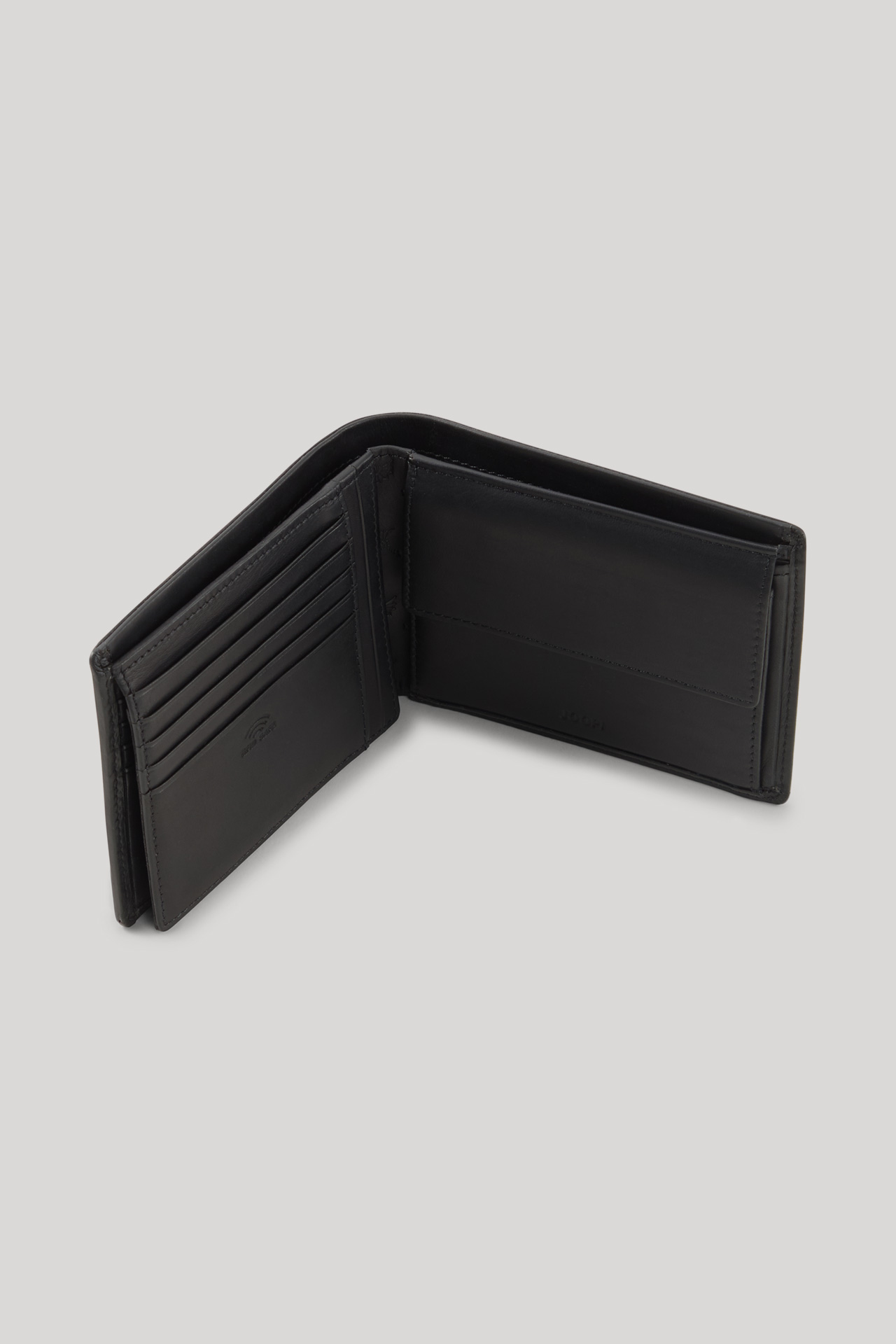 Im cleanen Design begeistert die ausklappbare Geldbörse Cerratano Typhon aus reinem Rindsleder. Feine Labeldetails verleihen moderne Akzente. Für das stimmige Finish sorgt das Inlay mit mehreren Kartenund Steckfächern sowie einem Münzfach mit Druckknopfschließe.