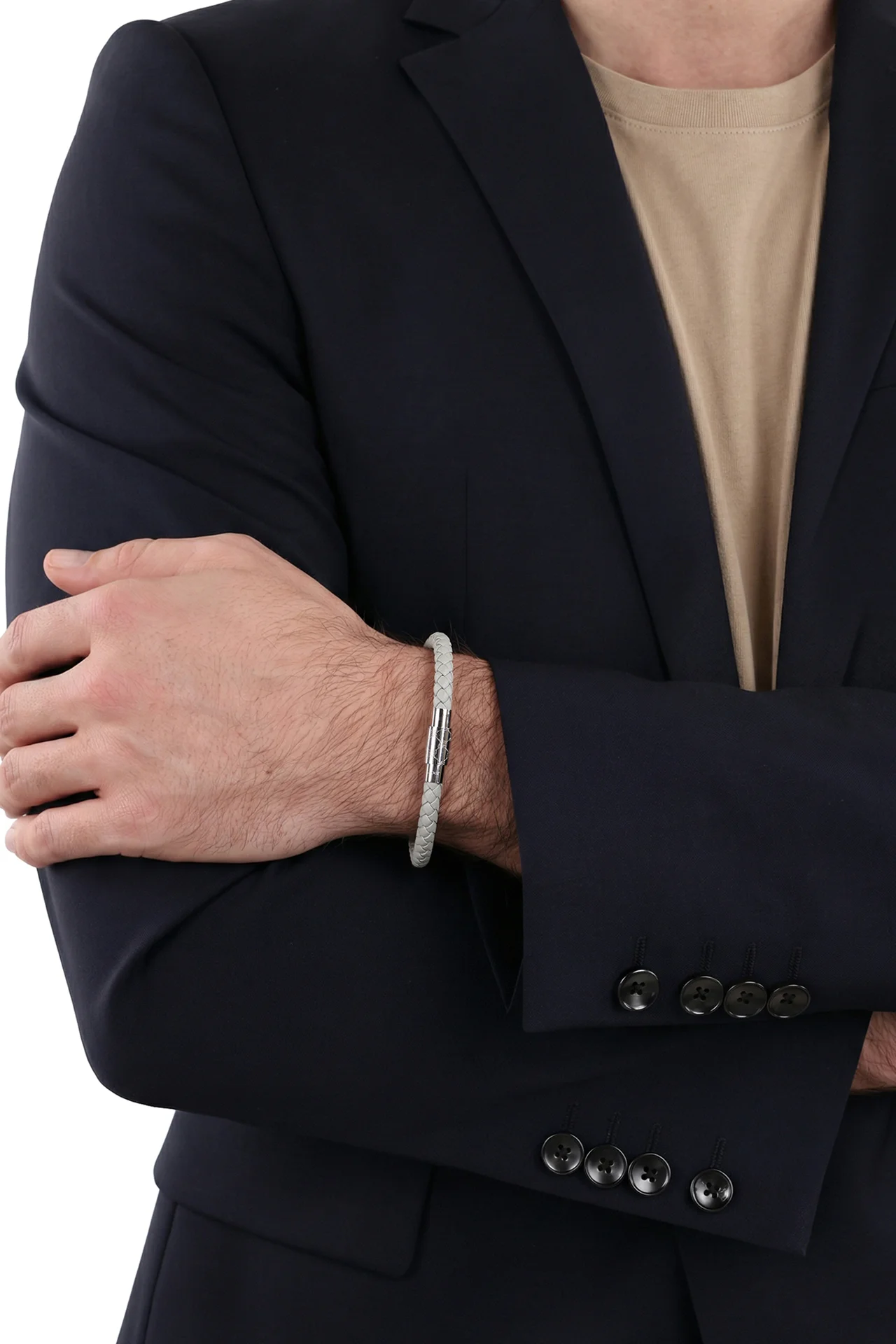 Im urbanen Designmix überzeugt das Armband als Favorit zu jedem Look. Leder in geflochtener Optik und der edle Monogramm-Verschluss aus Edelstahl prägen den markanten Stil. Das Accessoire kann vielseitig mit weiteren Schmuckstücken wie einem Ring oder den neuen Uhren der Kollektion kombiniert werden.