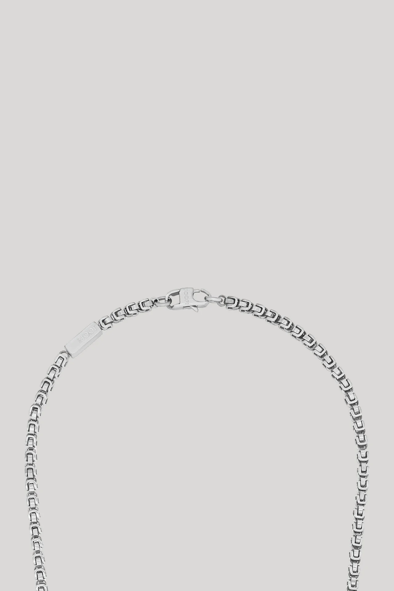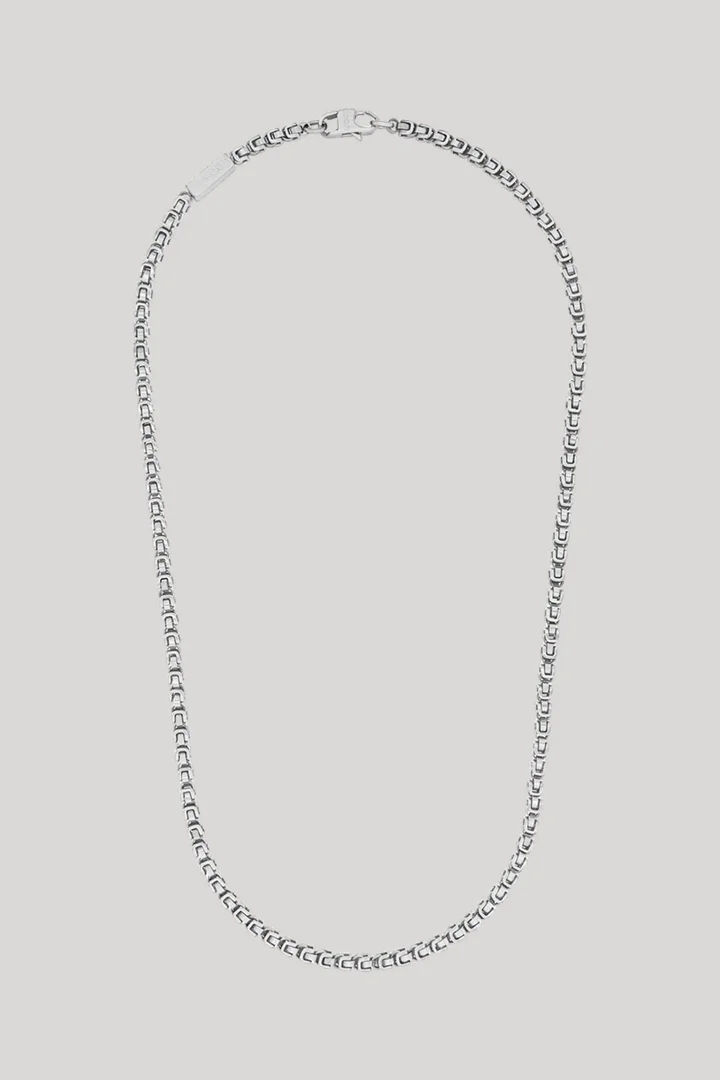 Maskuliner Style im ikonischen Look vereint die stilvolle Halskette aus Edelstahl in moderner Fantasiegliederung. Der eingefasste Logo-Emblem-Anhänger setzt einen ausdrucksvollen Akzent. Für ein unkompliziertes An- und Ablegen des Schmuckstücks sorgt der Karabinerverschluss – smart in Kombination mit den neuen Armbändern der Kollektion.