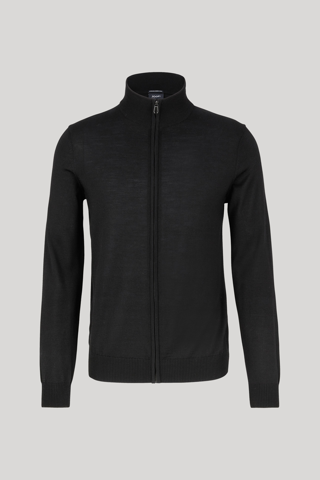 Stilvoller Allrounder für klassische Outfits oder smart casual: Die Strickjacke Davis aus reiner Schurwolle. Das Design überzeugt mit Stehkragen und Zip-Verschluss, ergänzt durch klassische Bündchenabschlüsse und eine Label-Plakette.