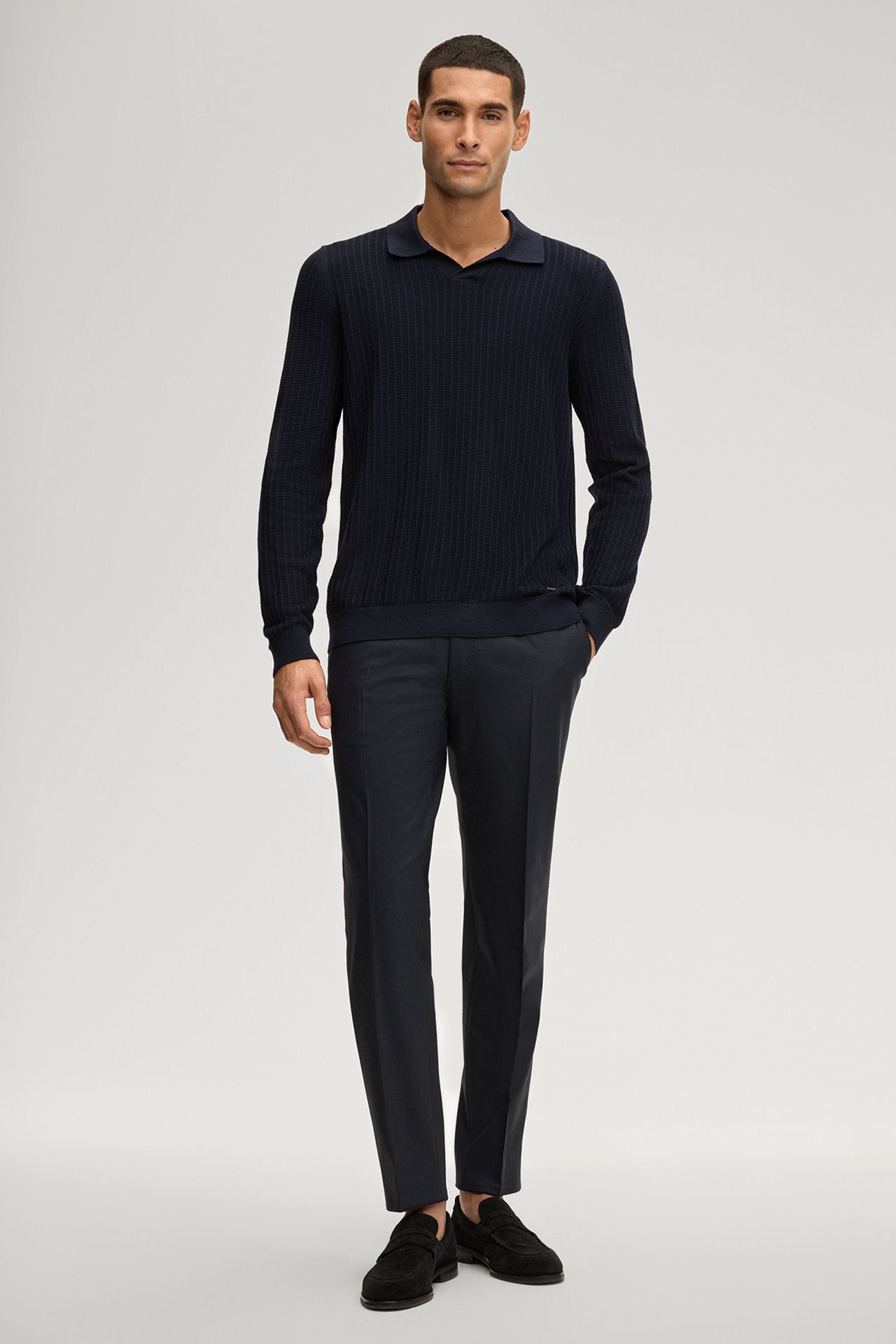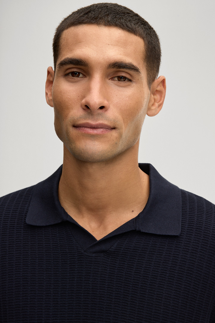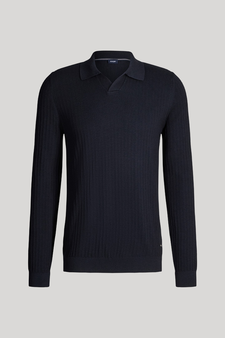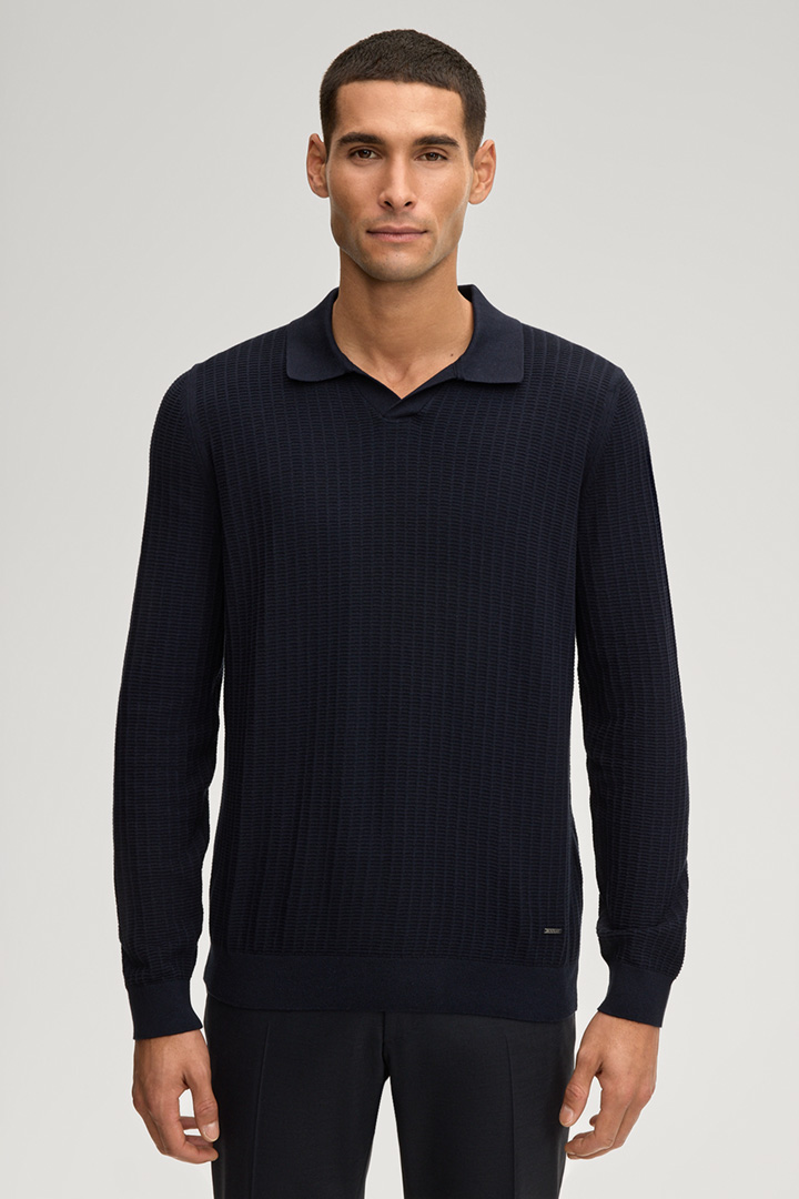 Im strukturierten Waffelstrickmuster erhält der Pullover Galdino ein stilvolles Upgrade. Akzente setzen der Polokragen und ein kurzer V-Ausschnitt, abgerundet durch klassisch lange Ärmel mit Bündchen. Die applizierte Logo-Plakette ergänzt den vielseitigen Look.