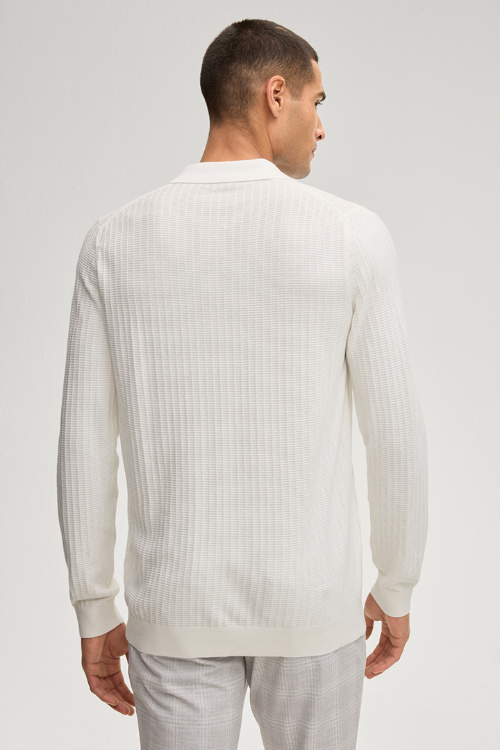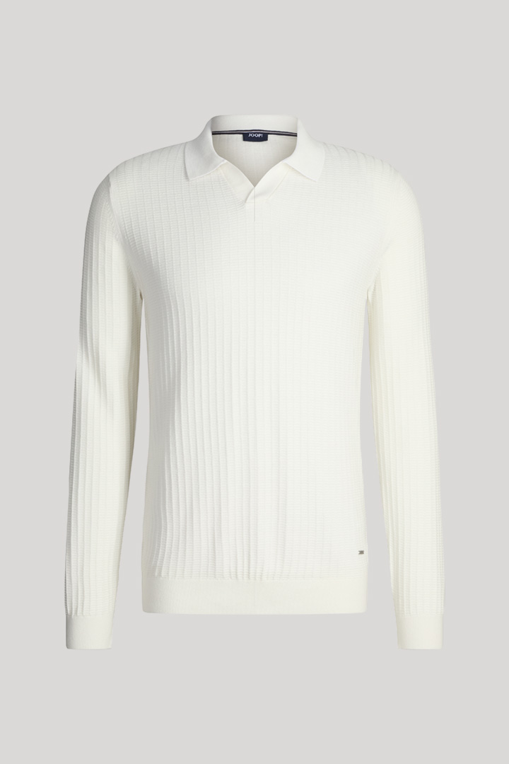 Im strukturierten Waffelstrickmuster erhält der Pullover Galdino ein stilvolles Upgrade. Akzente setzen der Polokragen und ein kurzer V-Ausschnitt, abgerundet durch klassisch lange Ärmel mit Bündchen. Die applizierte Logo-Plakette ergänzt den vielseitigen Look.