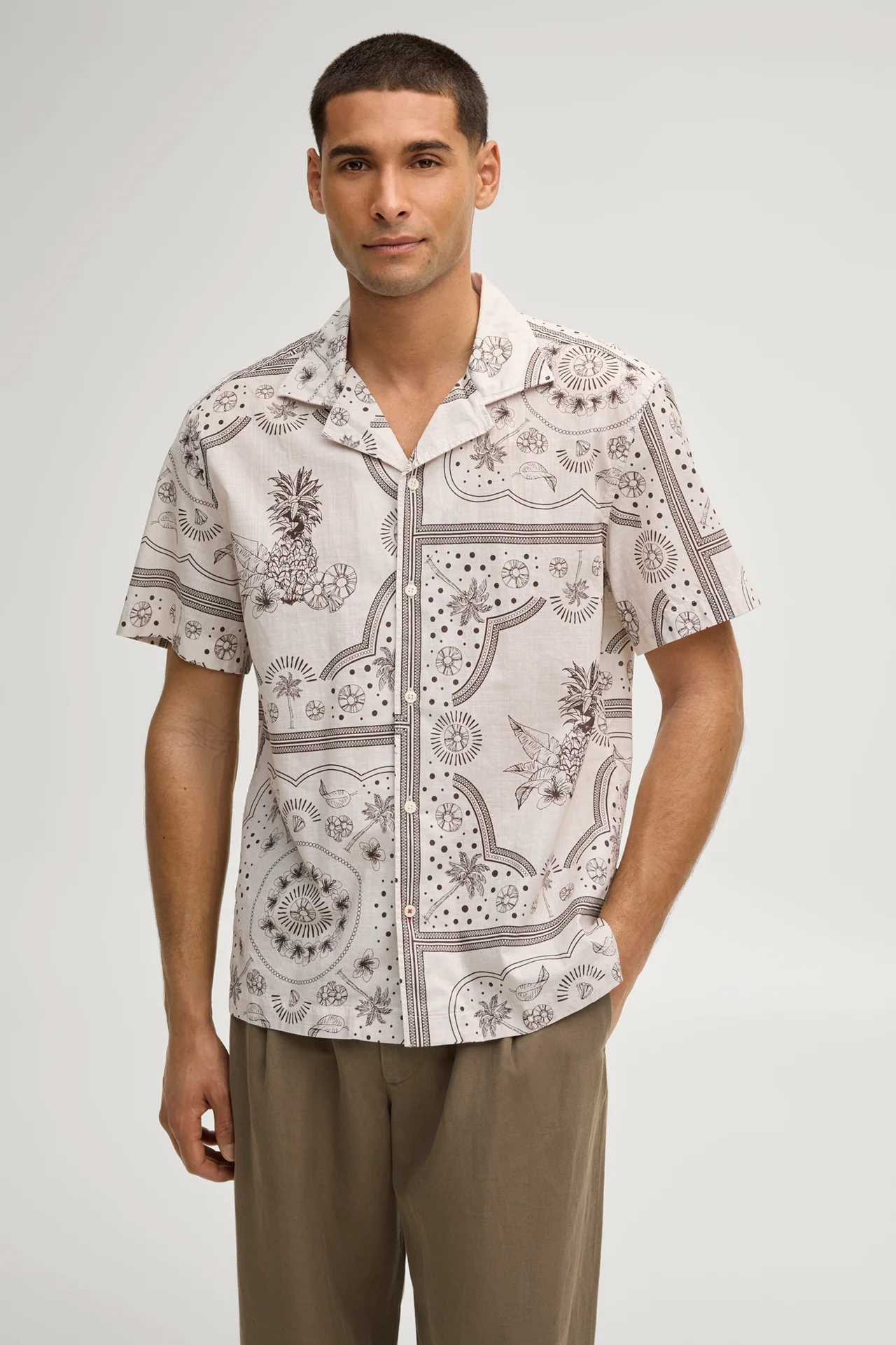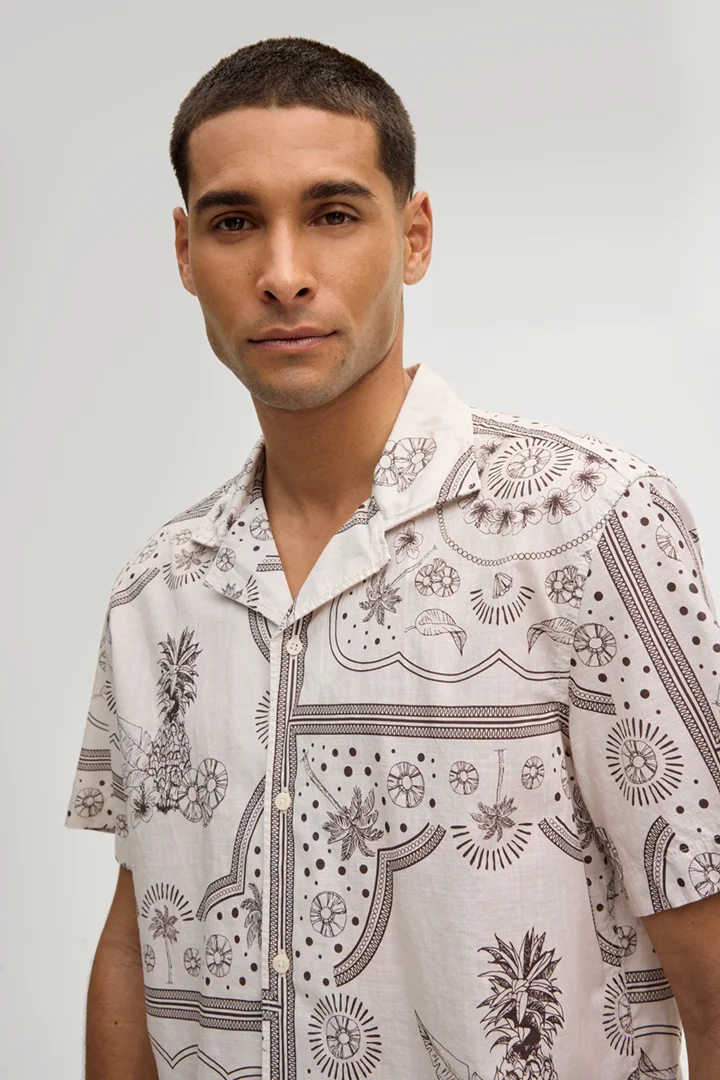Für Sommeroutfits mit Charisma beeindruckt das Hemd Hanes im puristischen Printdesign. Neben Reverskragen und Knopfleiste setzen Seitenschlitze und die kontrastive Label-Flag Akzente, abgerundet durch eine rückseitige Quetschfalte mit Schulterpasse. Der Reverskragen ergänzt den stilvollen Look.