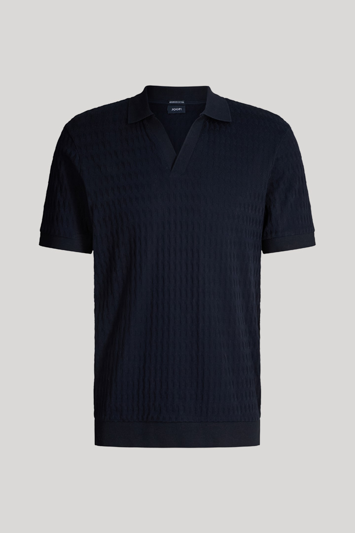 Im modernen Design mit Polokragen und kurzem V-Ausschnitt begeistert das Poloshirt Cleison. Jacquard-Strick schenkt smarte Akzente, während die seitliche Label-Flag den Look ikonisch abrundet. Das Piece überzeugt aus reiner Baumwolle.