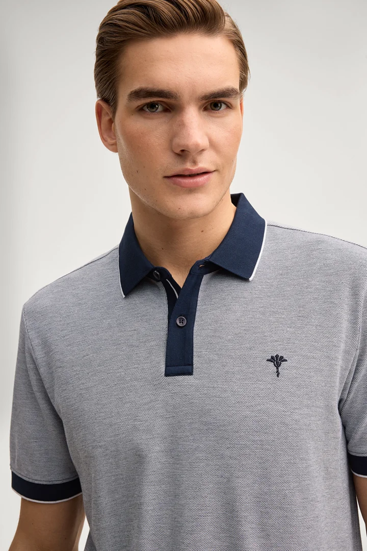 Kontrastive Elemente mit feinen Streifen zeichnen das moderne Poloshirt Percyco aus. Der klassische Polokragen, eine kurze Knopfleiste sowie gerippte Ärmelbündchen definieren das Design. Ikonische Details verleihen ein gesticktes Label-Signé und die seitliche Label-Flag. Puren Komfort bietet reine Baumwolle.