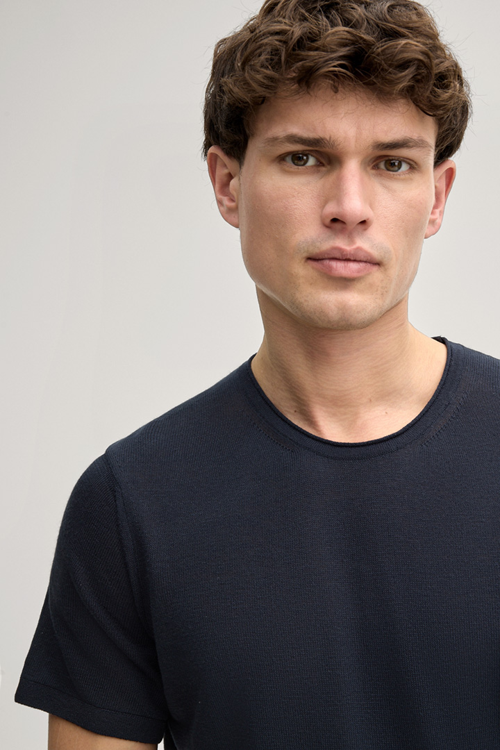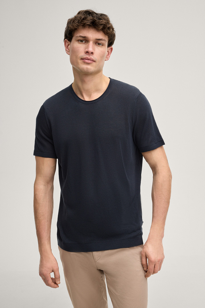 Smart und vielseitig im Styling überzeugt das Strickshirt Marosoro aus komfortabler Leinenmischung. Das Design erhält durch den modern akzentuierten Rundhalsausschnitt, kurze Ärmel und eine seitliche Label-Flag den stilvollen Charakter. Ein verstärkter Saum rundet das Piece hochwertig ab.