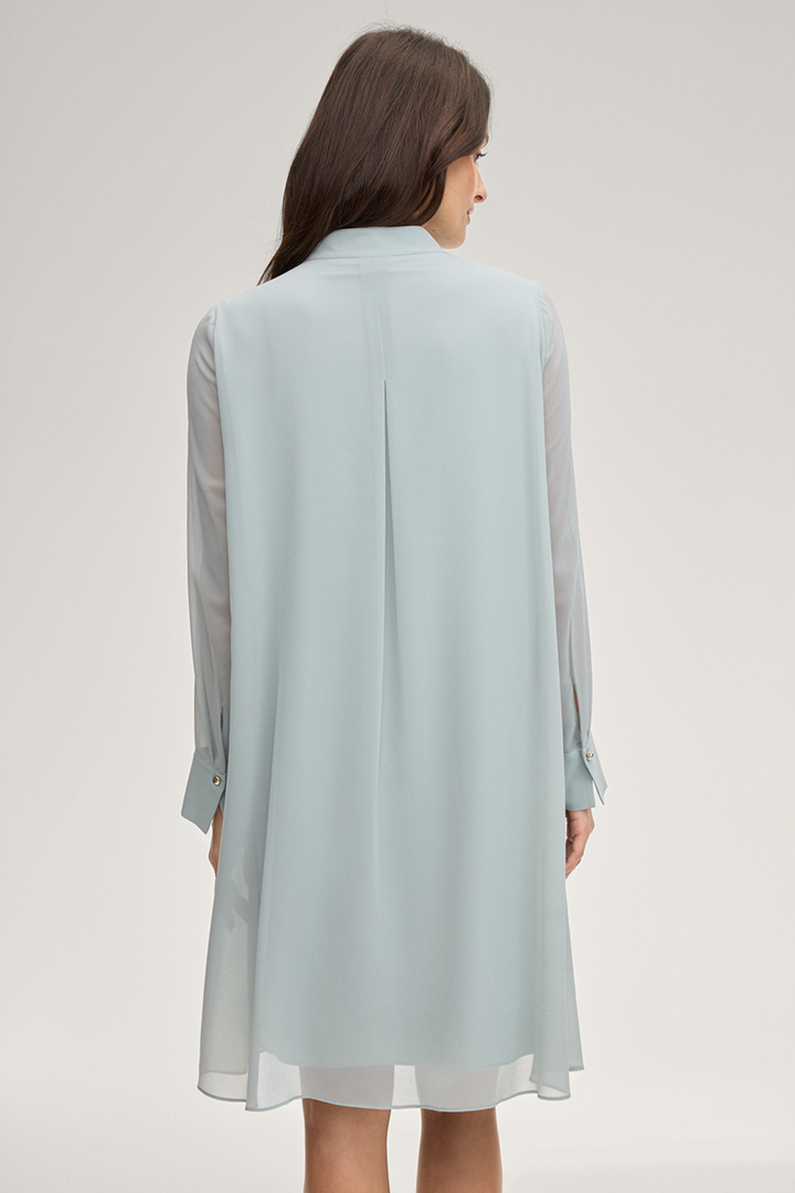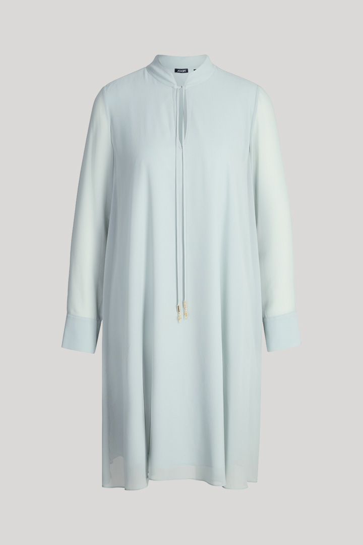 Das Kleid Delilah aus Chiffon mit transparenten Ärmeln begeistert als eleganter Look zu jedem Anlass. Das Bindeband mit Logo-Finish am Stehkragen schenkt einen raffinierten Akzent, abgerundet durch knöpfbare Ärmelmanschetten und den modern geschwungenen Saum.
