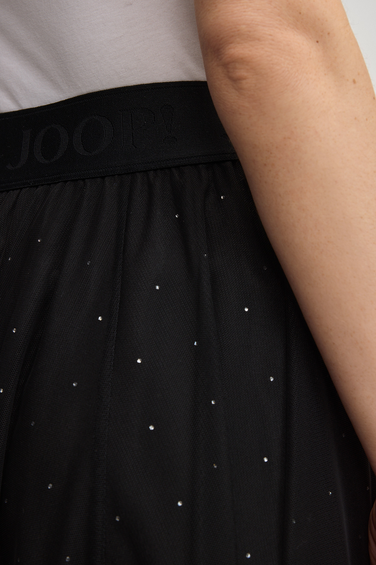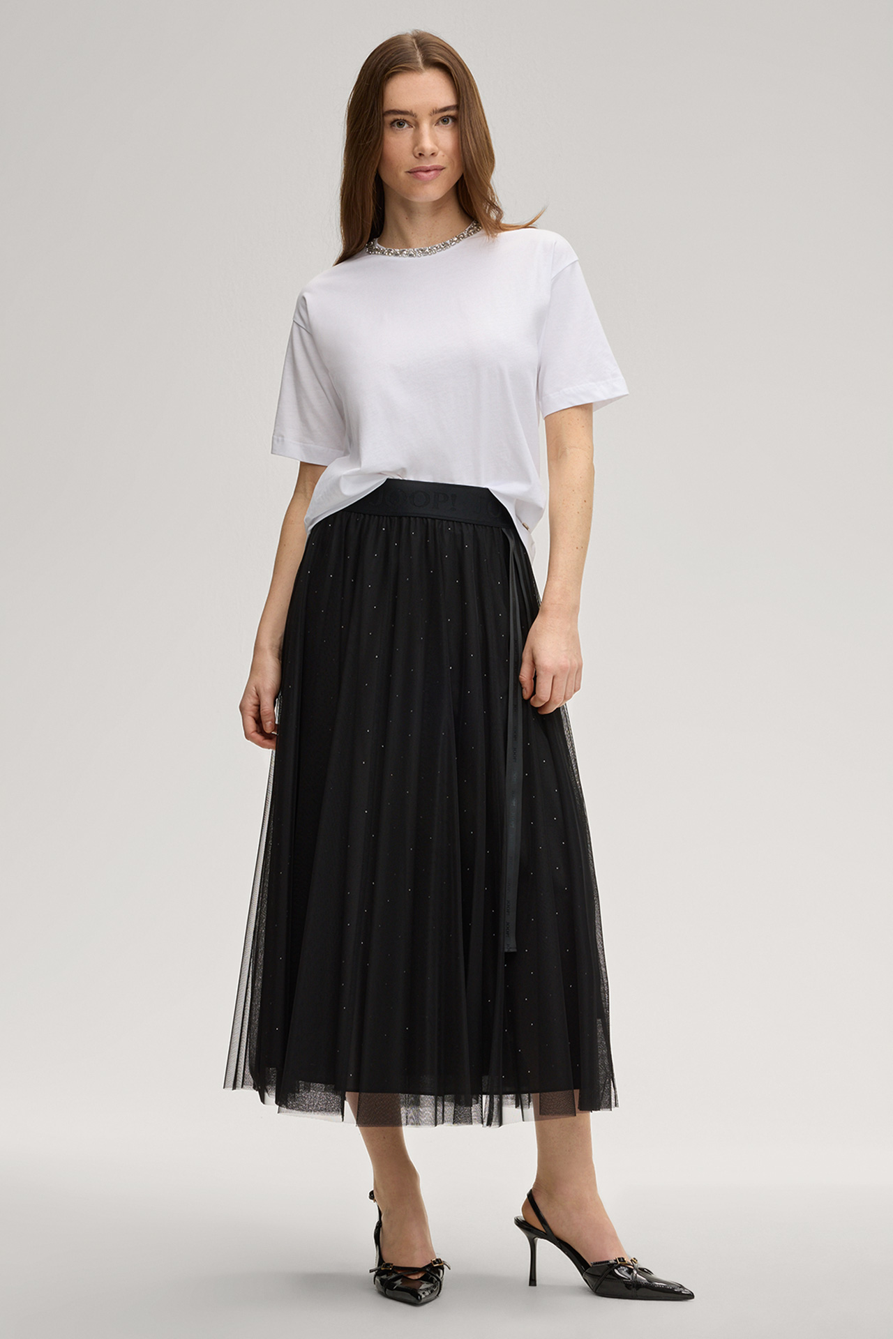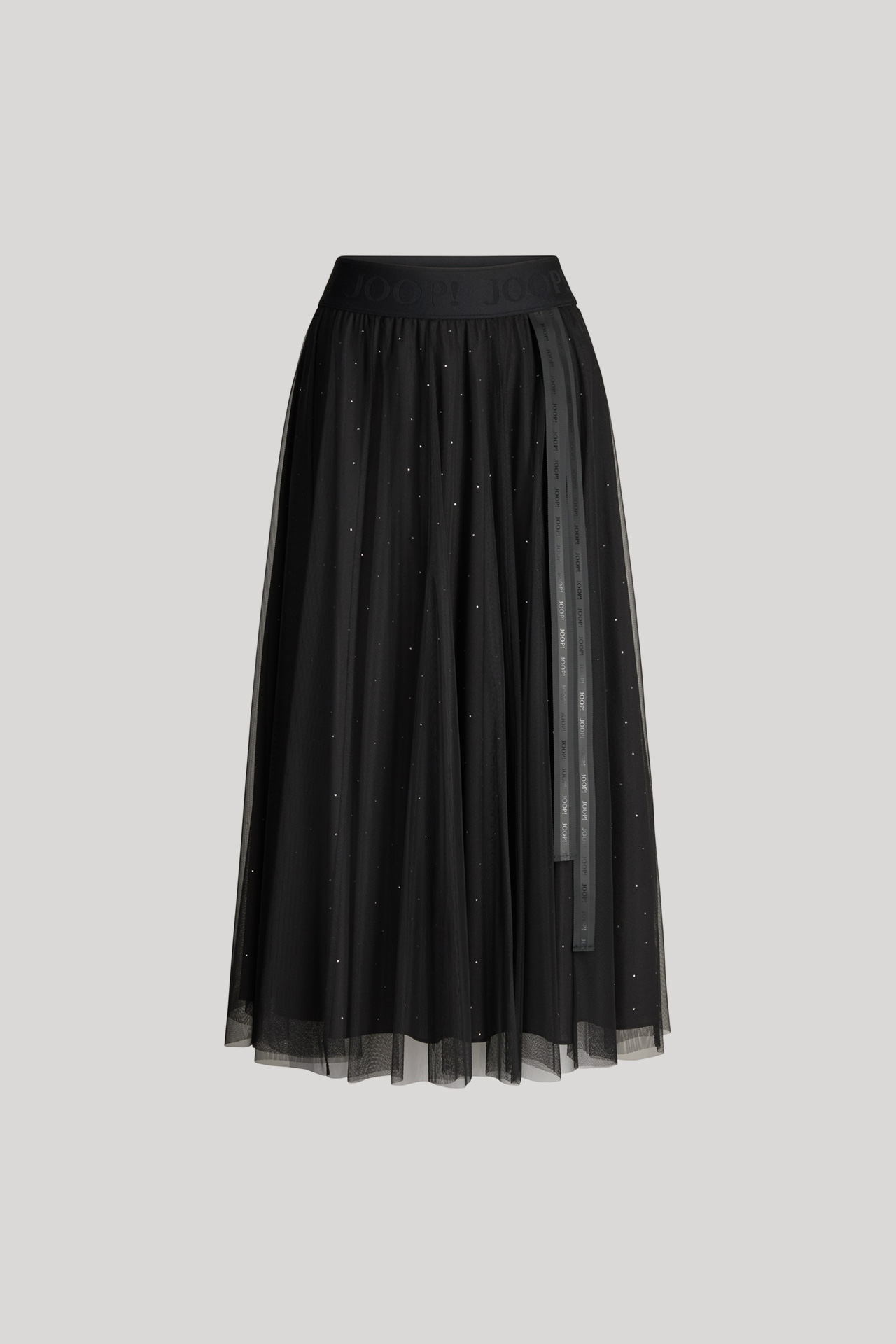 Layering-Tüll und ein blickdichtes Futter im monochromen Design zeichnen den femininen A-Linien-Rock Frida aus. Für einen ikonischen Eyecatcher sorgt das dekorative Logo-Ripsband, komfortabel ergänzt durch den elastischen Jacquard-Bund – ein variables Item für moderne Looks mit stilvollem Flair.