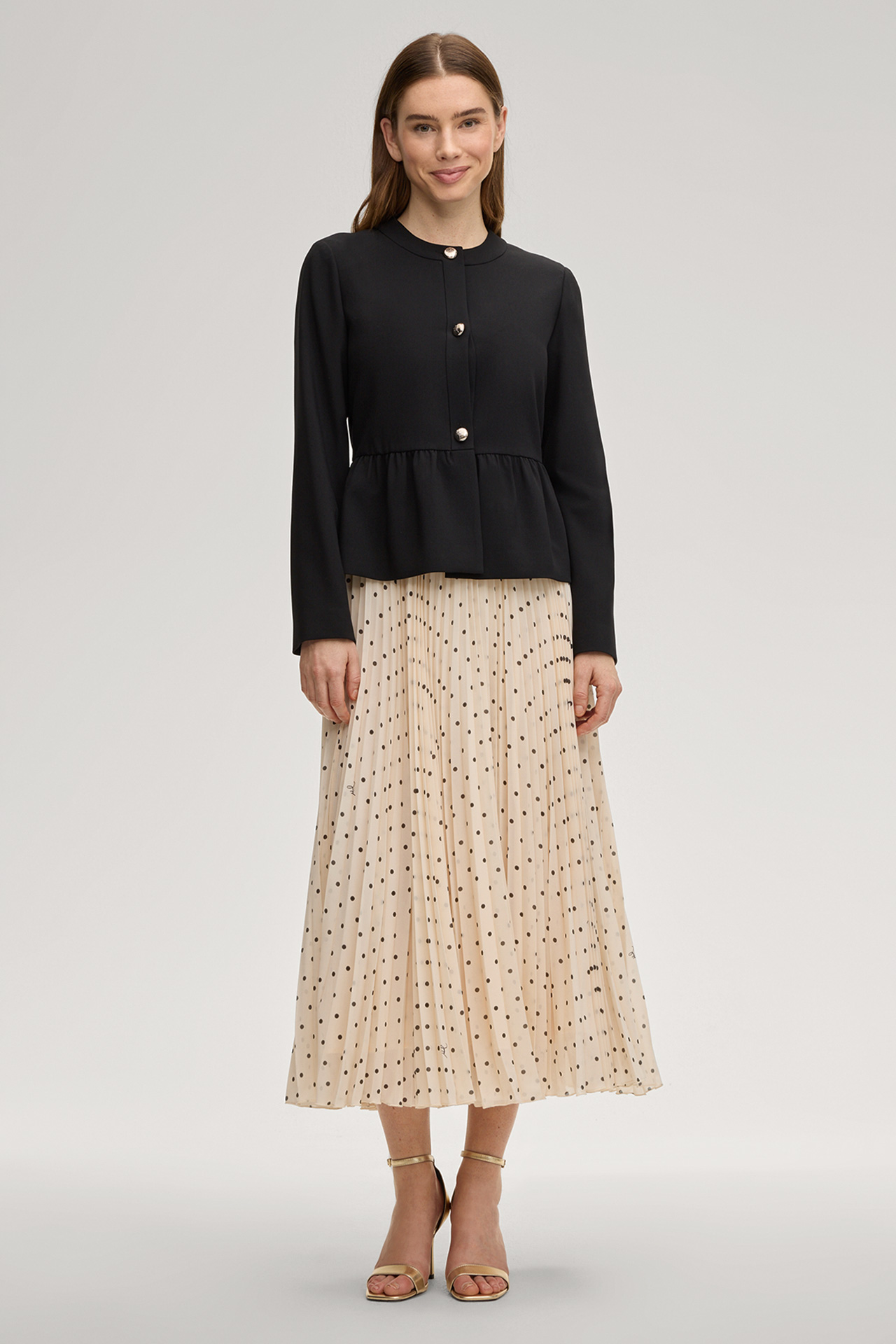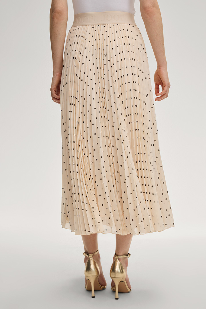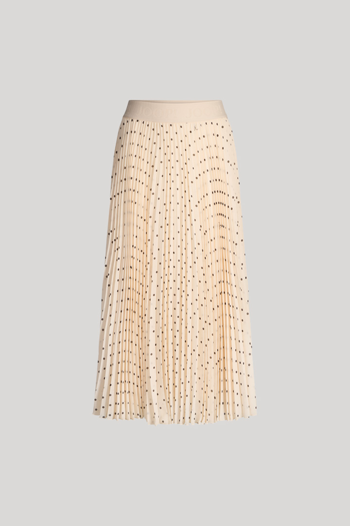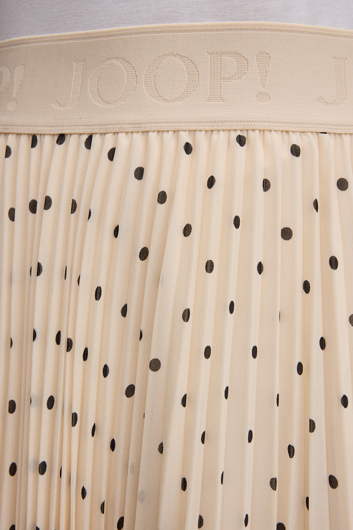 Feine Tupfen heben den modernen Look des Plisseerocks Salma hervor, der durch den blickdichten Unterrock ein komfortables Finish erhält. Ein elastischer Logo-Jacquard-Bund rundet den femininen A-Linien-Rock ab – stilvoll und modern zu kombinieren für feine Anlässe und Styles mit Twist.