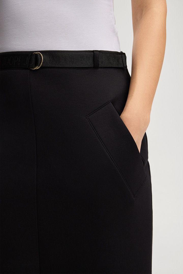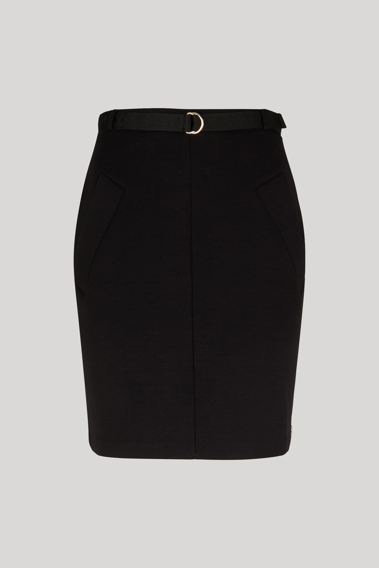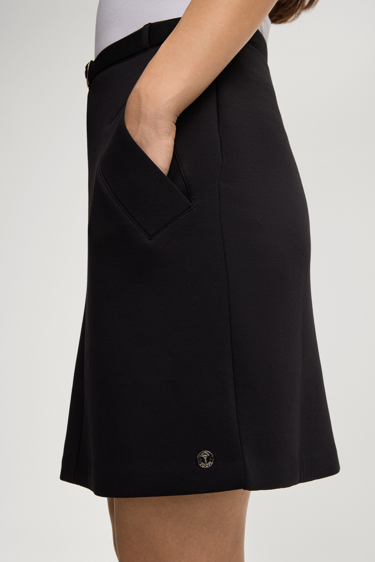 Als stilvolles Piece für variable Outfits erweist sich der Rock Teiko in moderner Scuba-Qualität aus stretchiger Tech-Viskose. Den Look heben der Gürtel mit D-Ringen, seitliche Eingrifftaschen sowie eine ikonische Metallic-Plakette am Saum hervor. Für ein stimmiges Finish sorgt der nahtverdeckte Zipper.