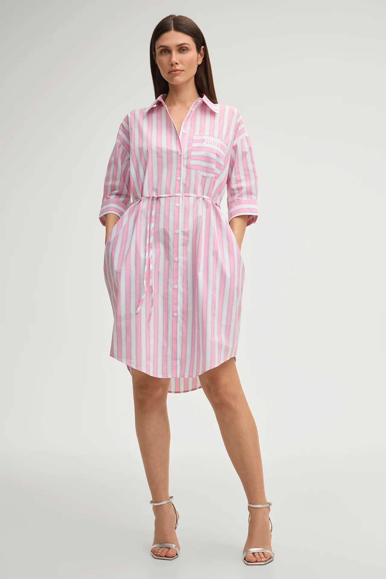 Hemdblusenkleid Dua in Rosa/Weiß gestreift