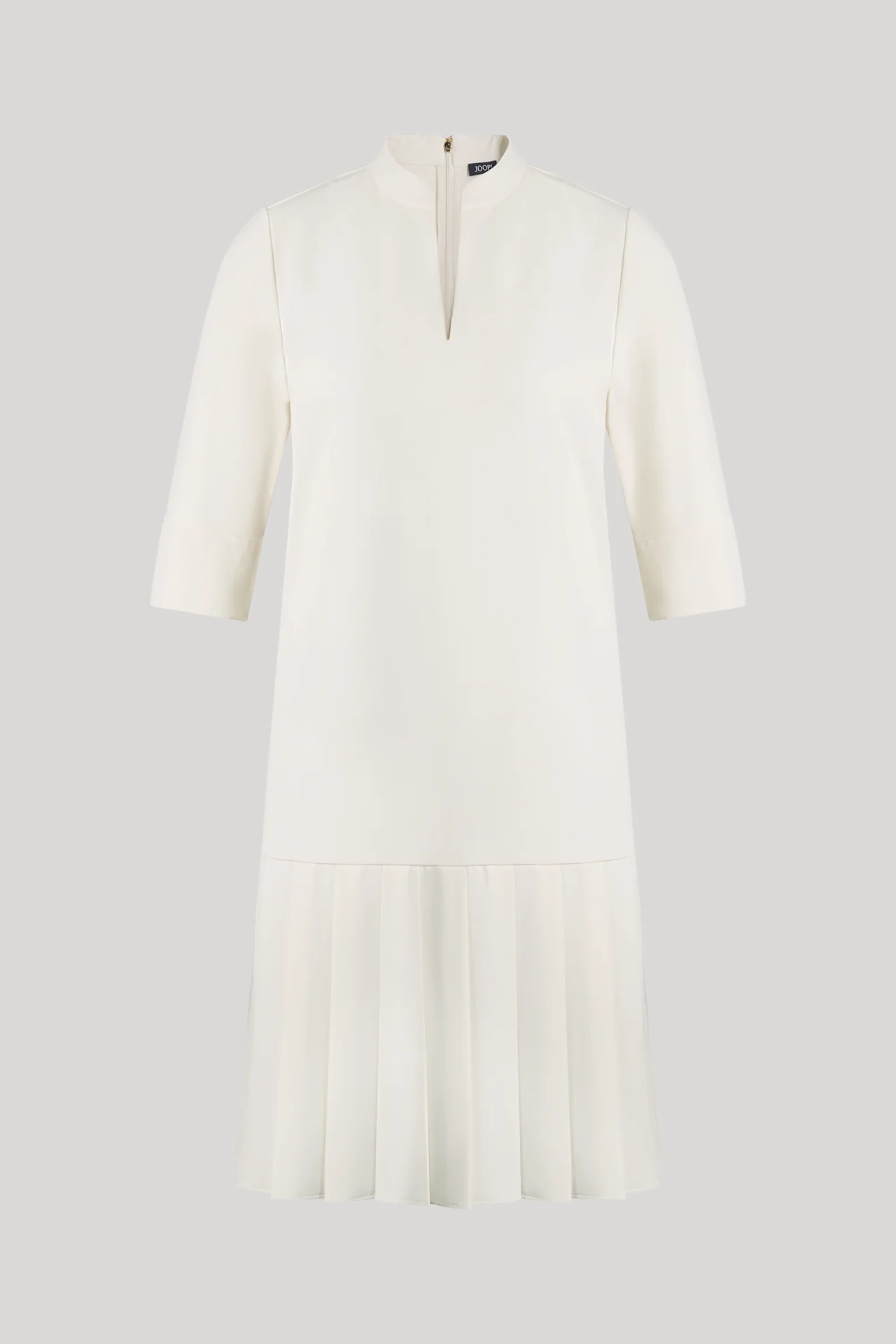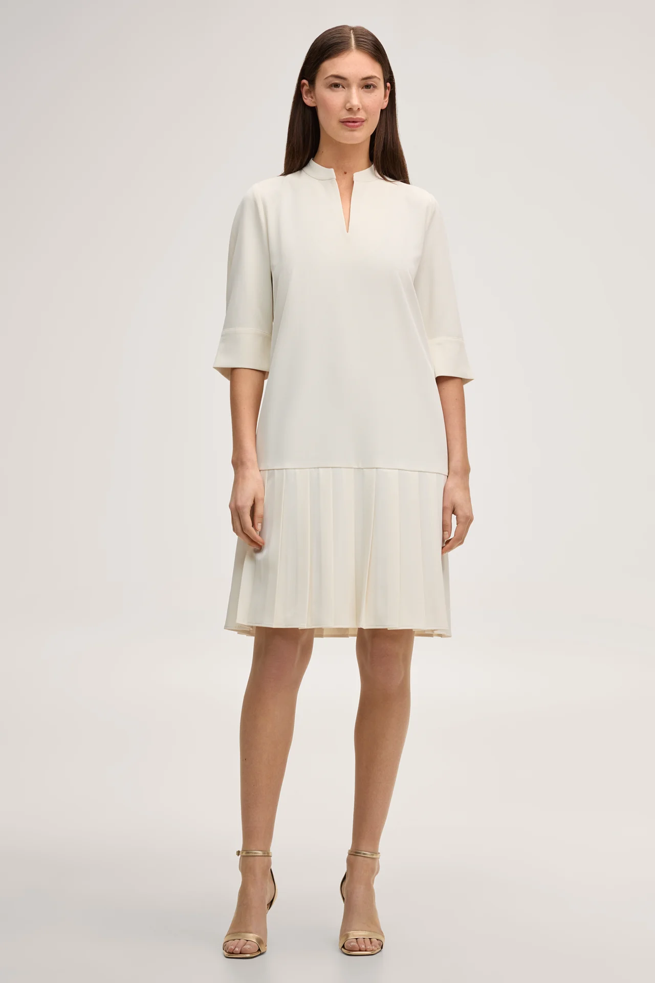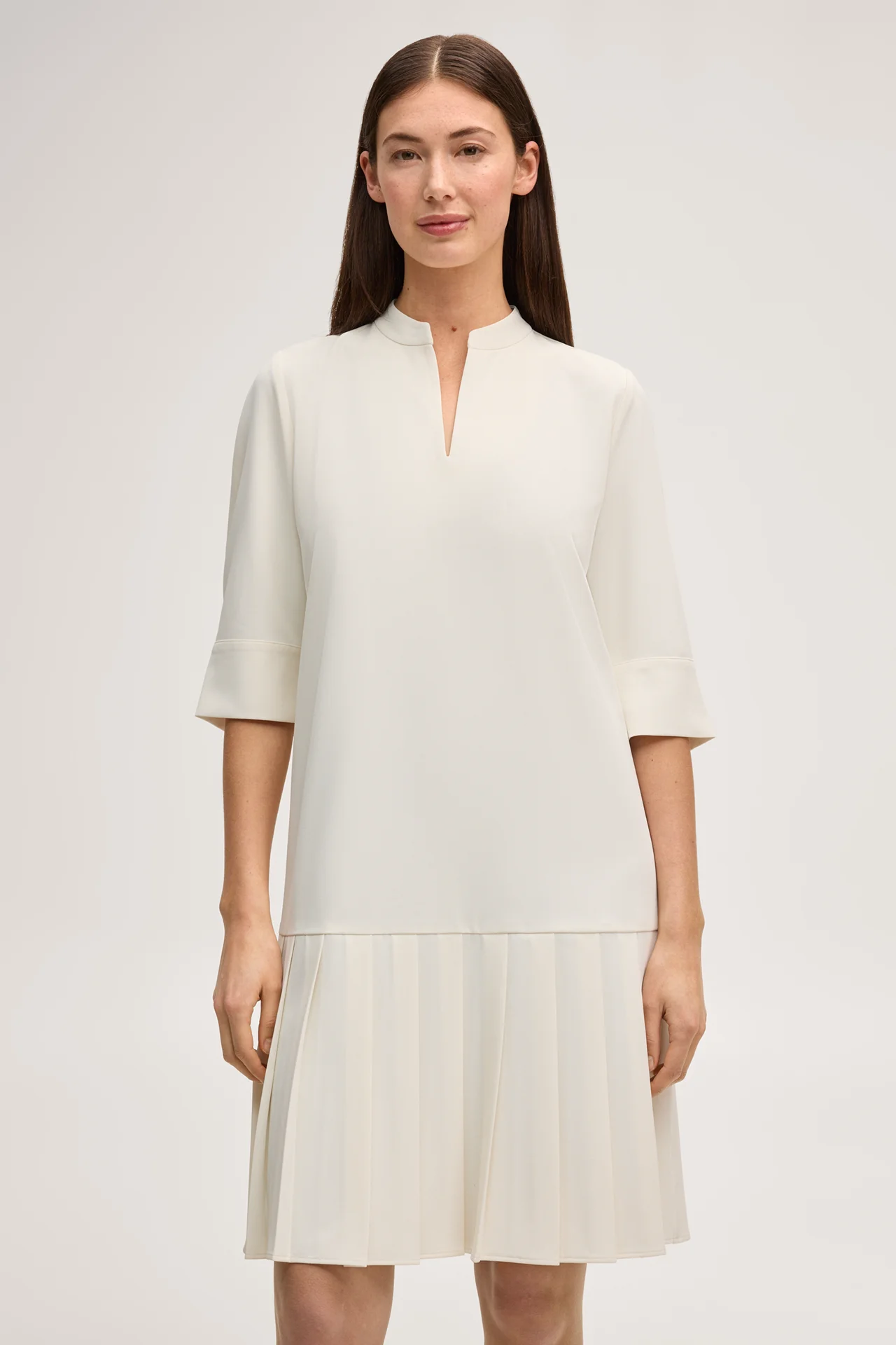 Das Kleid Dalga überzeugt mit Rockteil im raffinierten Faltendesign als stilvoller Allrounder für verschiedene Freizeitlooks oder Business-Stylings. Für den klassischen Look sorgen der schmale Stehkragen und der feine V-Ausschnitt. Halbe Ärmel mit geschlitzten Abschlüssen ergänzen das Piece stimmig. Ein komfortables Finish bietet die stretchige Qualität aus technischen Fasern.