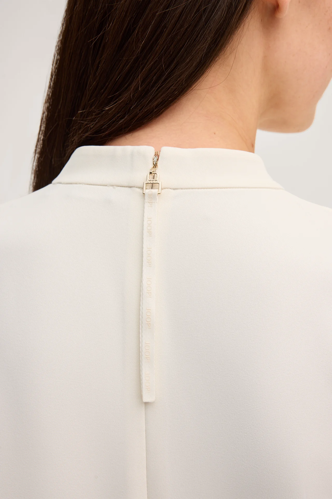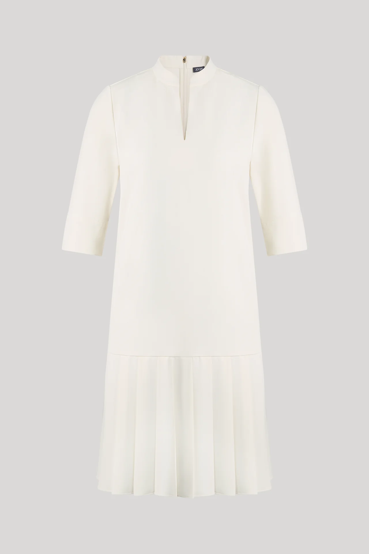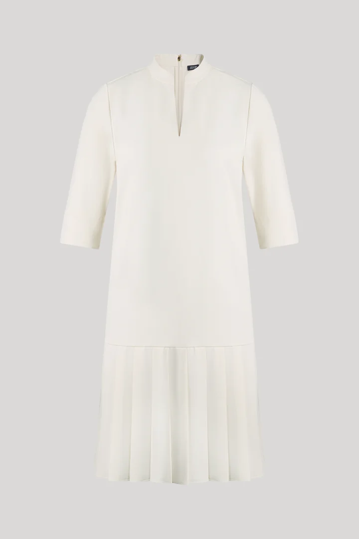 Das Kleid Dalga überzeugt mit Rockteil im raffinierten Faltendesign als stilvoller Allrounder für verschiedene Freizeitlooks oder Business-Stylings. Für den klassischen Look sorgen der schmale Stehkragen und der feine V-Ausschnitt. Halbe Ärmel mit geschlitzten Abschlüssen ergänzen das Piece stimmig. Ein komfortables Finish bietet die stretchige Qualität aus technischen Fasern.