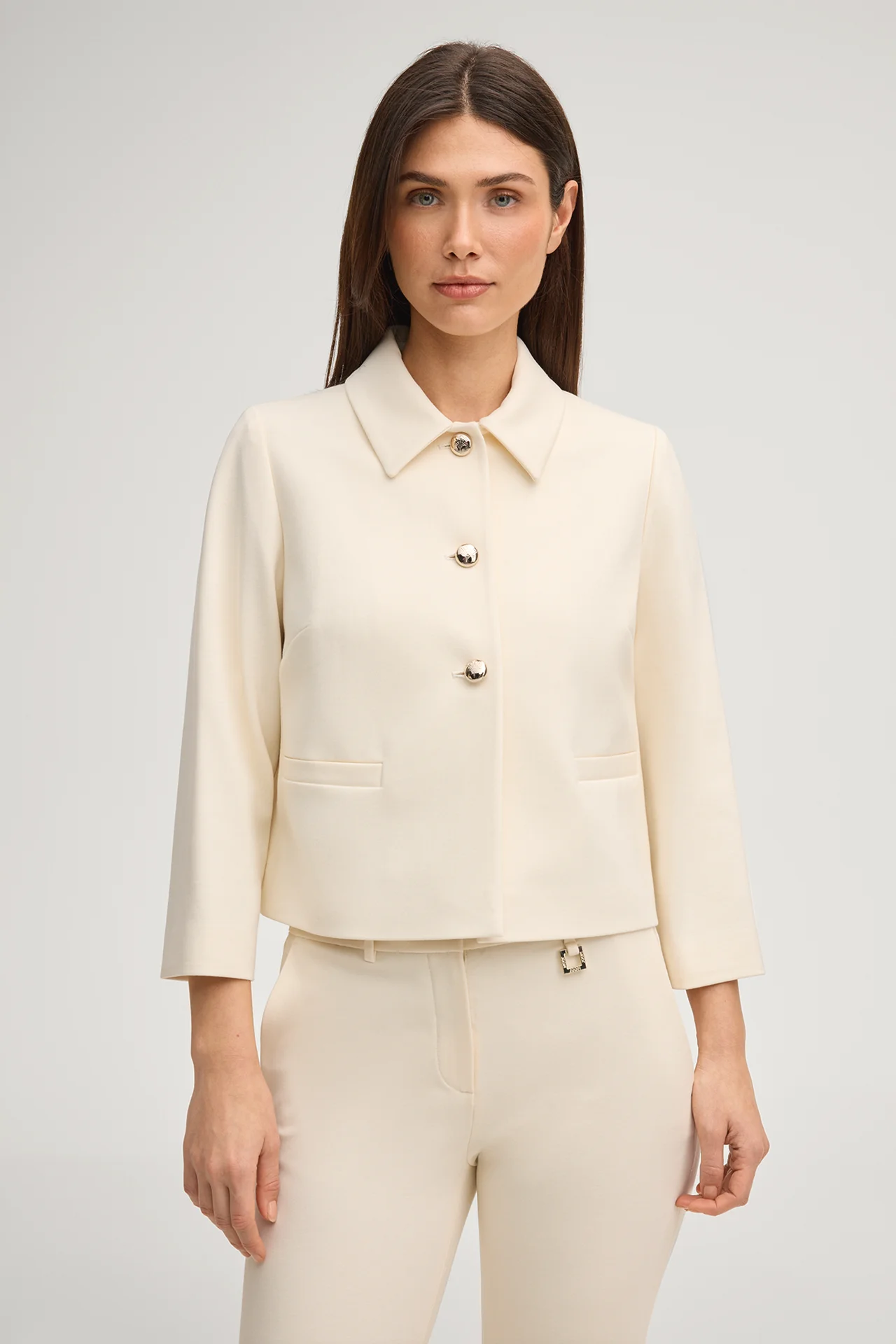 Judica is an elegant short blazer jacket that creates an ambitious look when paired with matching suit trousers. The cropped design gives it a modern flair, in style completed by the turn-down collar and piped pockets. Signé buttons in a gold look and a label badge applied to the back provide highlights. The lightweight viscose blend provides comfortable wear.