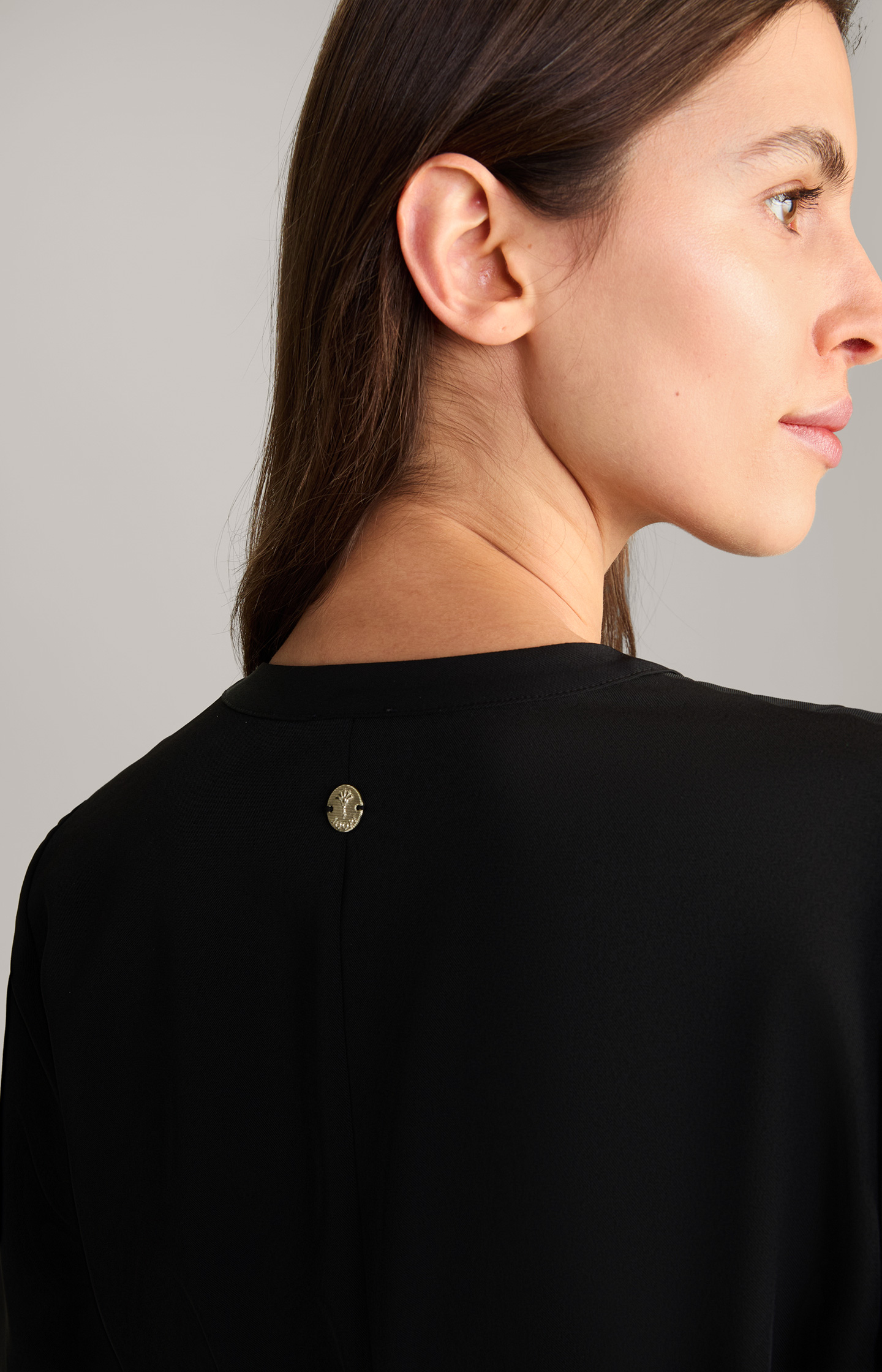 Made from twill crêpe with a concealed button placket, the Damara dress stands out - stylishly complemented by a narrow stand-up collar. The tie belt and an elasticated insert on the back of the waist take comfort to the next level. Metallic logo details round off this piece in signature style.
