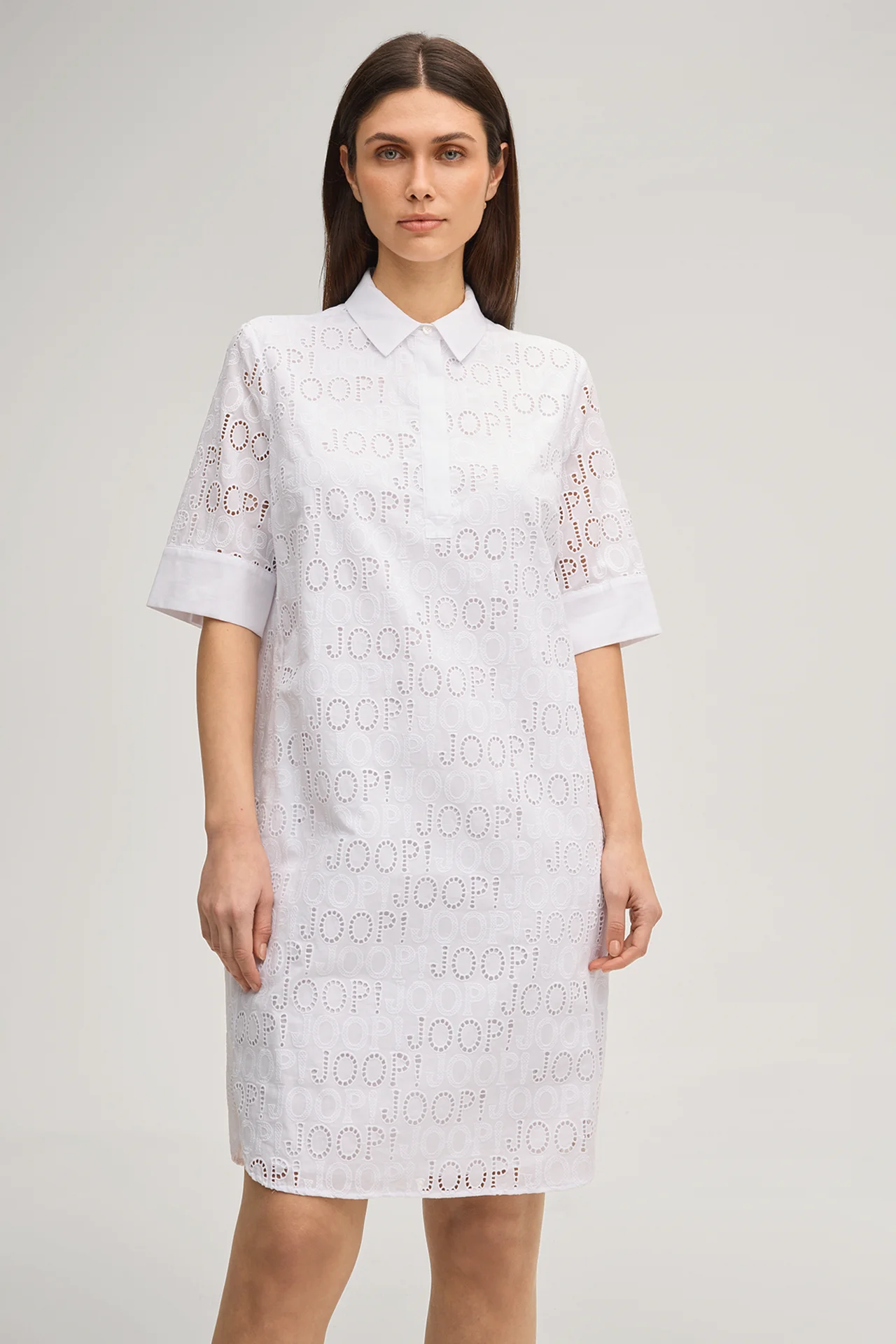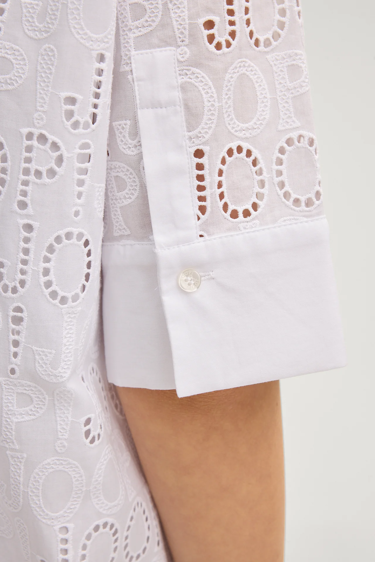 The logo eyelet embroidery design characterizes the Deria shirt dress as a signature piece for casual looks. Classical details such as the concealed button placket and shirt collar stress the modern look, which is completed by short sleeves with buttoned cuffs. The back yoke with a sophisticated logo signature gives a sophisticated twist, while the hem is accentuated by side slits. Pure cotton and a pure viscose lining provide perfect comfort.