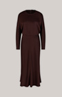 The sophisticated decorative stitching, the logo-embossed drawstring at the back zip fastening and the batwing sleeves characterise the elegance and flair of this satin dress. The fitted waist and femininely flared skirt are complemented by a round neck, and give the flowing silhouette a highlighting twist.