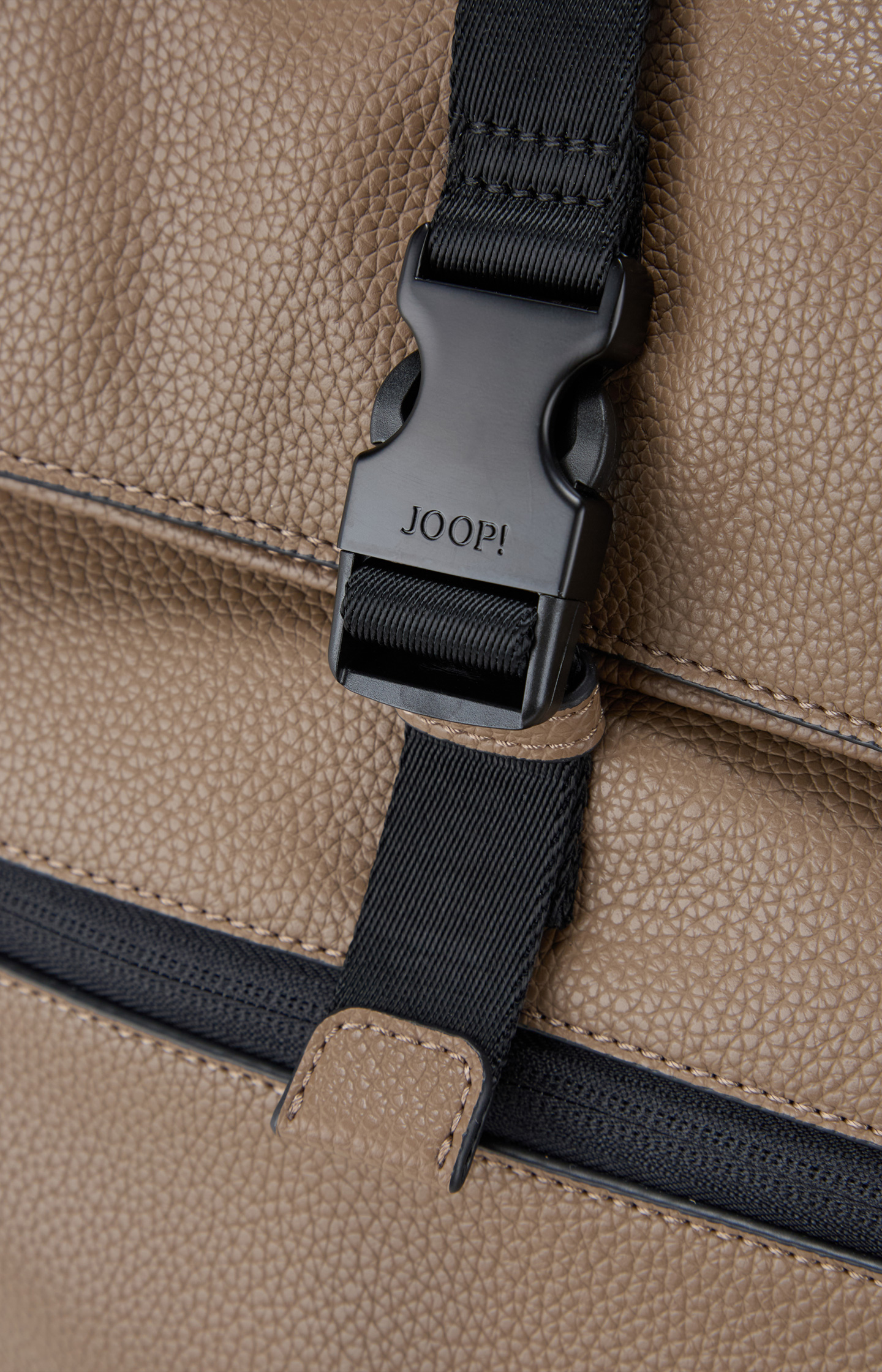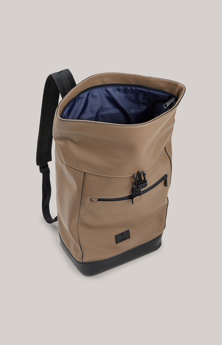 The Nepezzano Otis backpack in finely grained faux leather appeals as a stylish business item. A modern fold-over design with zip fastening and a push-lock closure characterises this accessory, comfortably complemented by adjustable shoulder straps and a padded mesh back. A logo tag on the front creates an iconic finish to this piece.