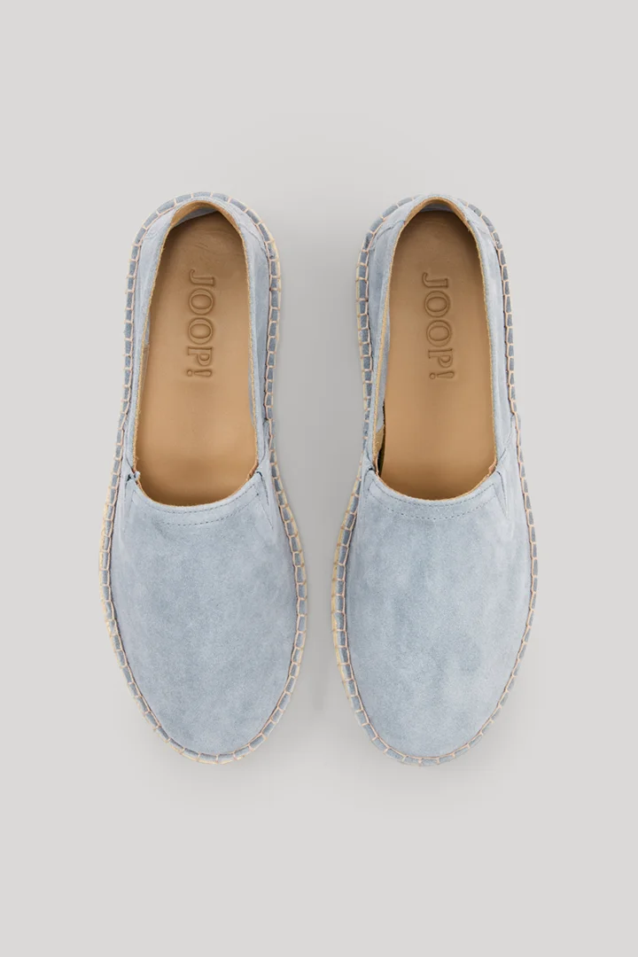 With their espadrille-style design, modern raffia rubber sole and tonal stitching, the Velluto stampa lias slip-ons inspire with their elegant style when worn with breezy linen trousers and chino shorts. Their elegant character is defined by pure suede leather and iconic details such as the cornflower monogram print on the back.