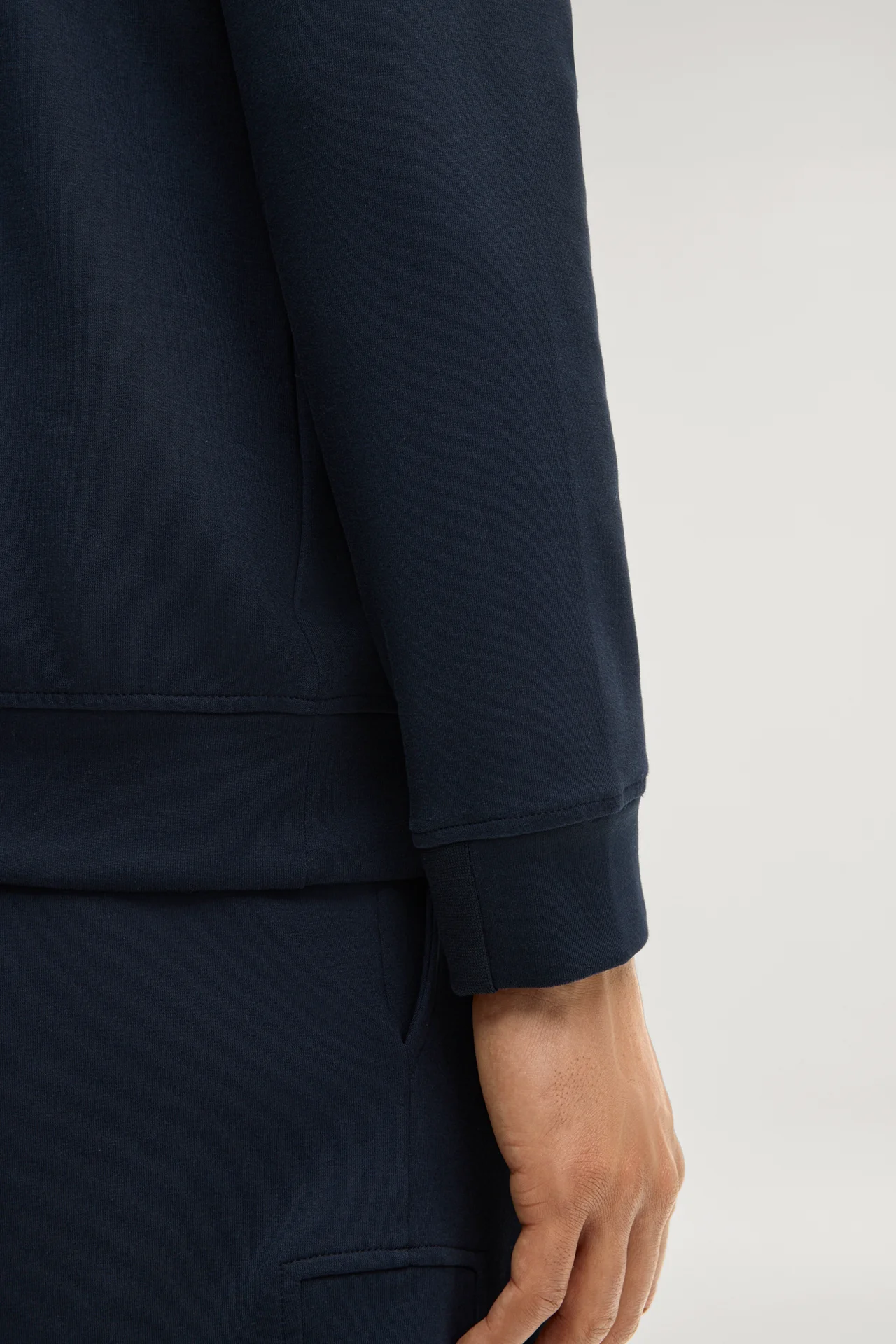 Ideal for leisure, loungewear and casual looks, the Cessar sweatshirt jacket is the perfect all-rounder. The cotton blend provides pure comfort. The piece features a full-length zip and a split kangaroo pocket. Attached cuffs and a stand-up collar provide a harmonious finish. The label emblem at chest height adds an iconic emphasis.