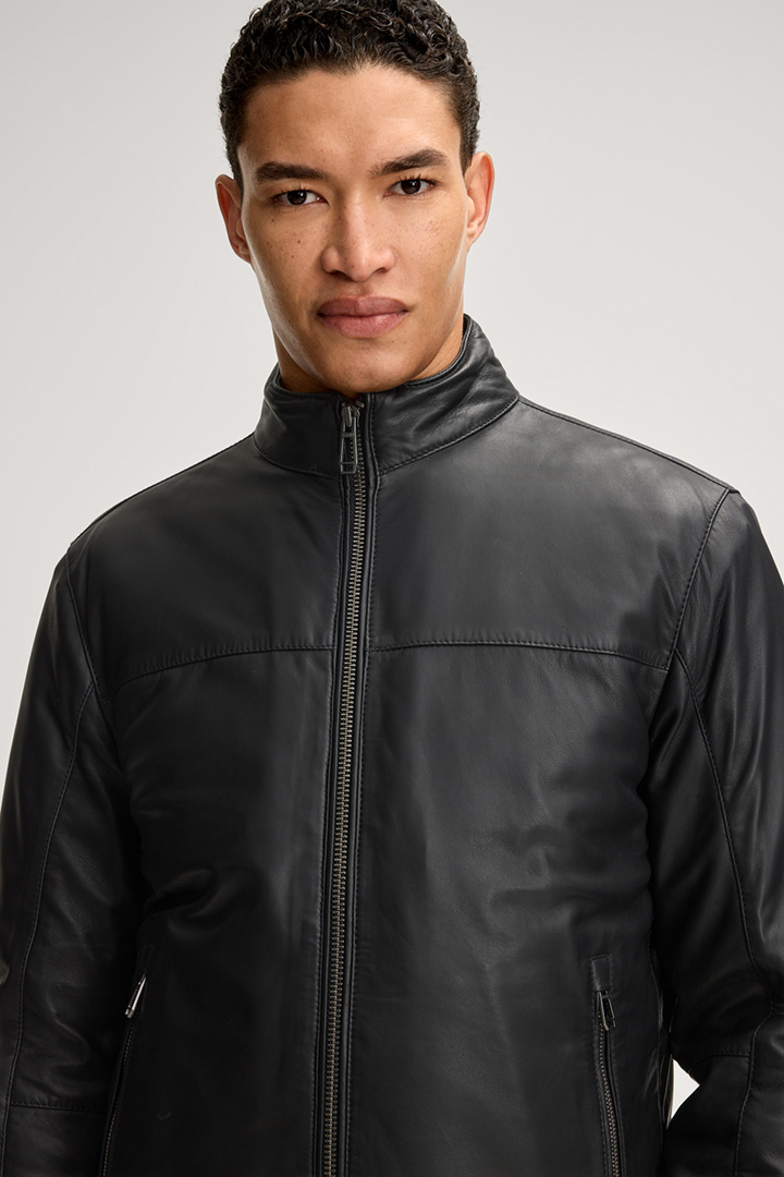 The Rone leather jacket is out to impress in pure leather with warm padding. The biker-style design is accentuated by the narrow stand-up collar and full-length zip, harmoniously complemented by side pockets. A discreet logo patch adds a signature brand finish.