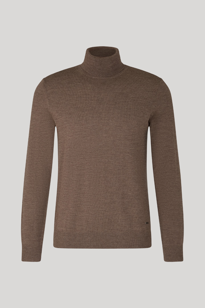 The Donte turtleneck sweater is a stylish piece that can be worn with suit pants, jeans, and chinos. Extra-fine merino wool provides added comfort, complemented by ribbed cuffs and a straight hem. The metallic logo badge completes this knitwear essential.