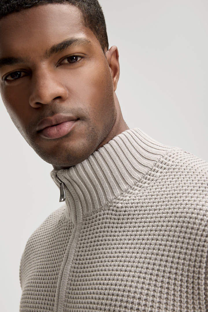 The Henrios half-zip pullover flaunts an urban style with its classic zipped stand-up collar. Ribbed cuffs and a textured look add stylish accents, complemented by a logo patch on the sleeve. Made from pure cotton.