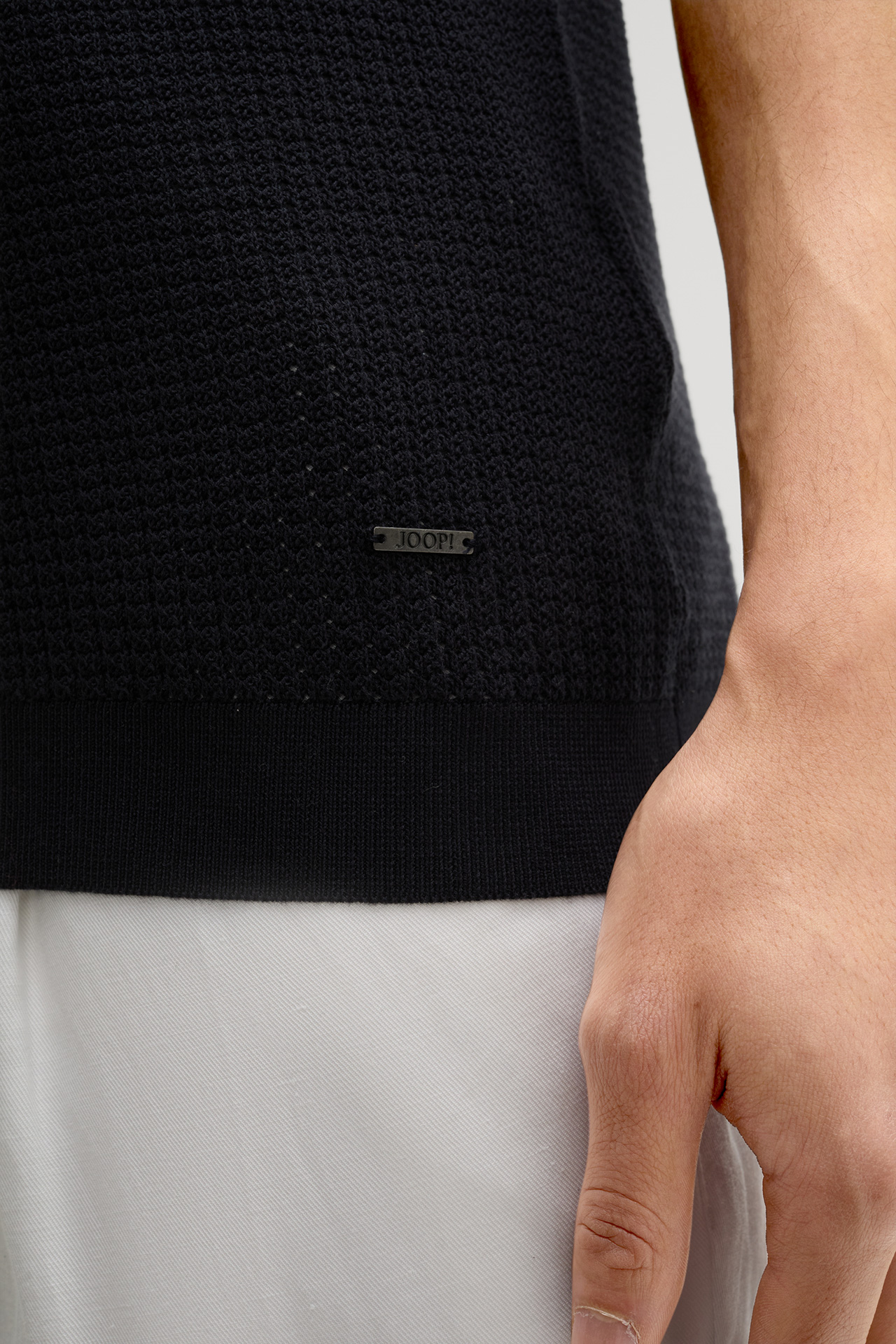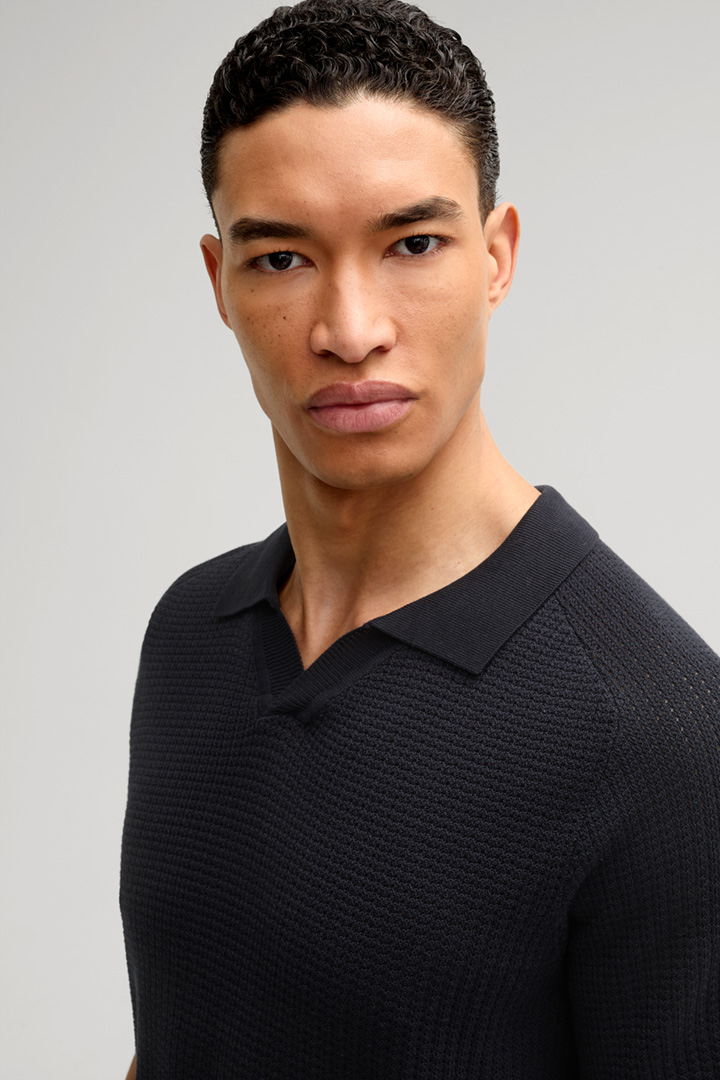 The open polo collar with its short V-neck lends the Magno knitted polo shirt a modern upgrade. The elasticated ribbed cuffs and hem provide a comfortable finish - complemented by the pure cotton quality.