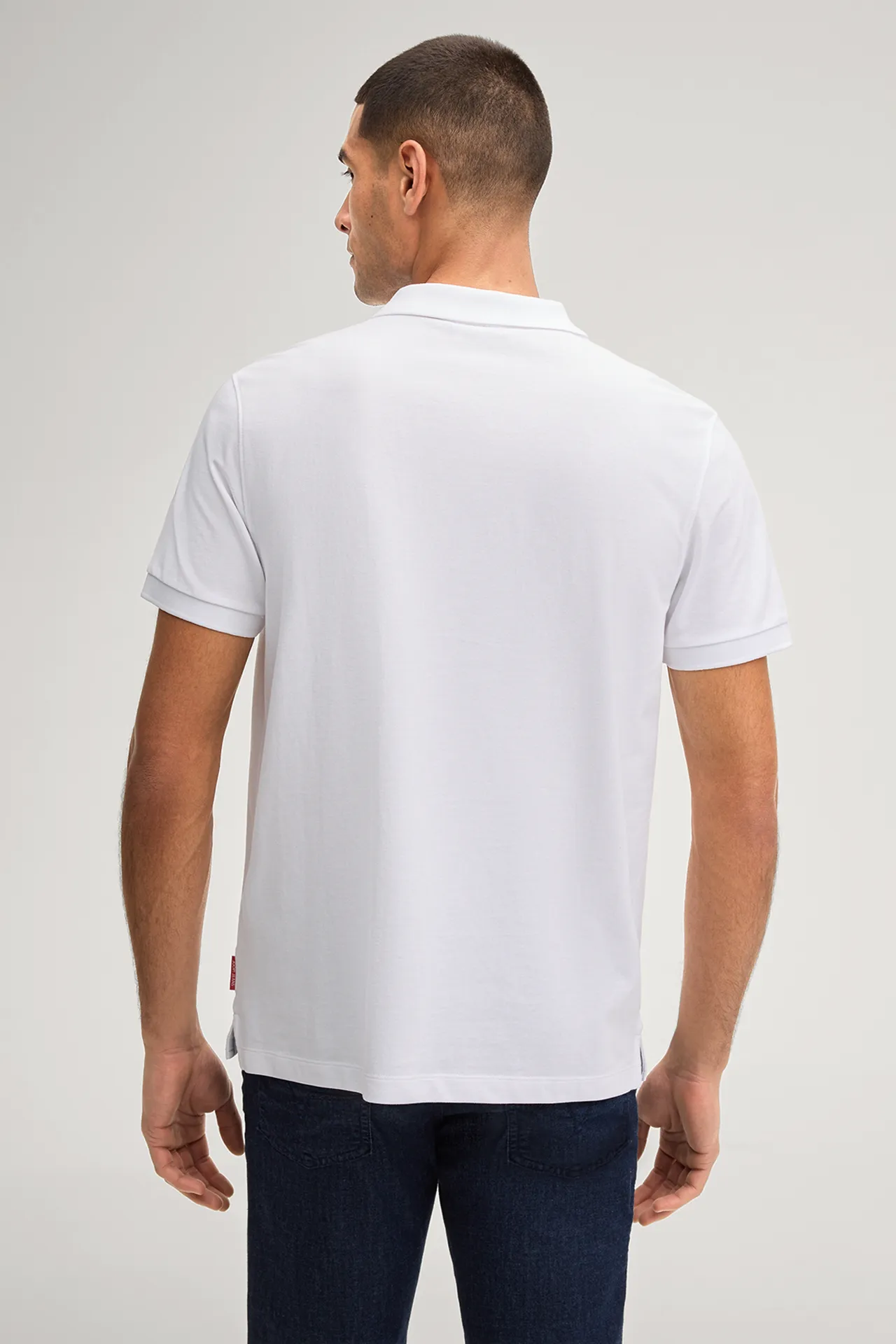 The fine piqué fabric made of organic stretch cotton gives the Ambrosius polo shirt a modern edge. Ribbed cuffs on the short sleeves and the side hem slits lend comfort to the design, while a tonal logo print adds a signature accent. The classic polo collar and button placket complete the piece.