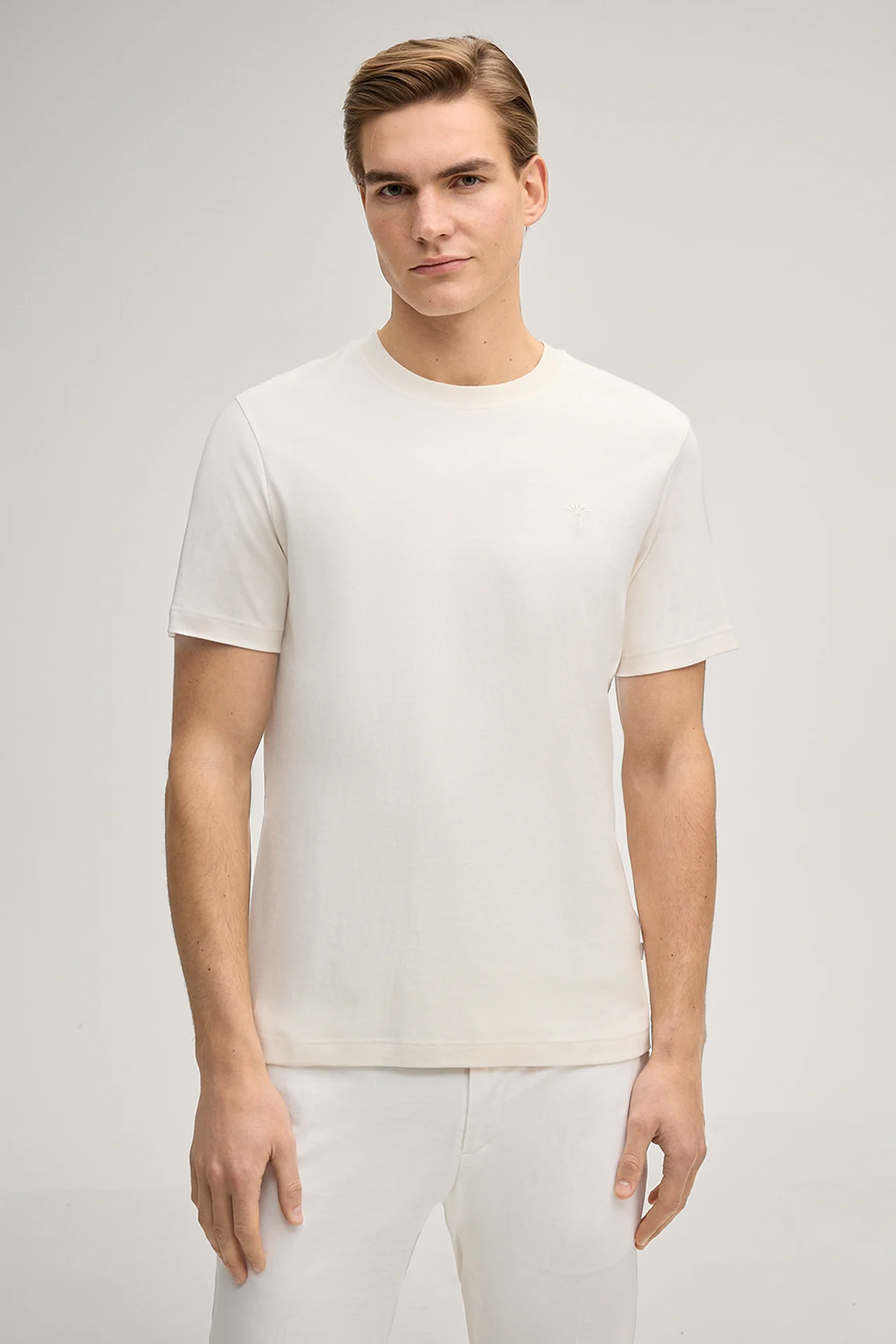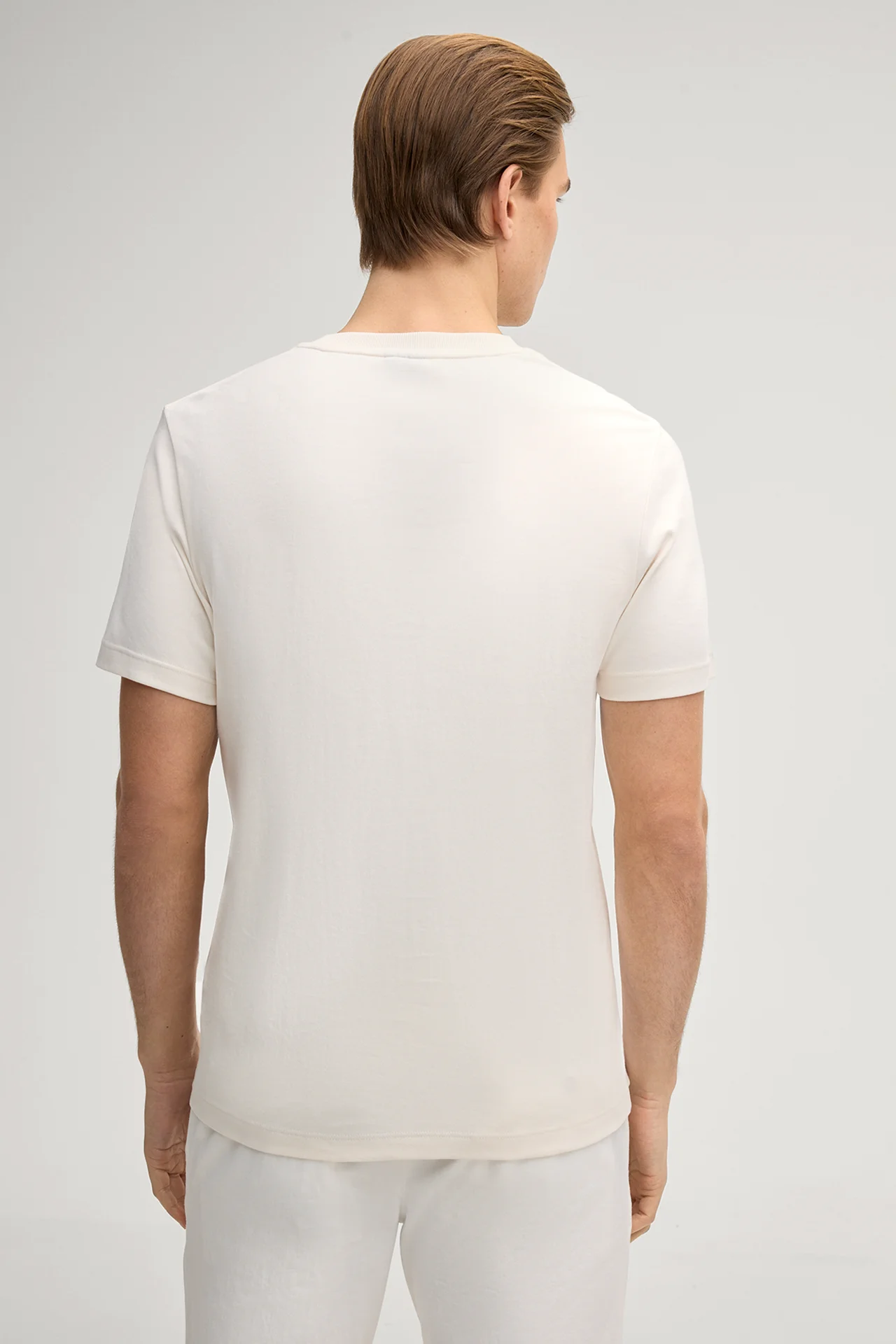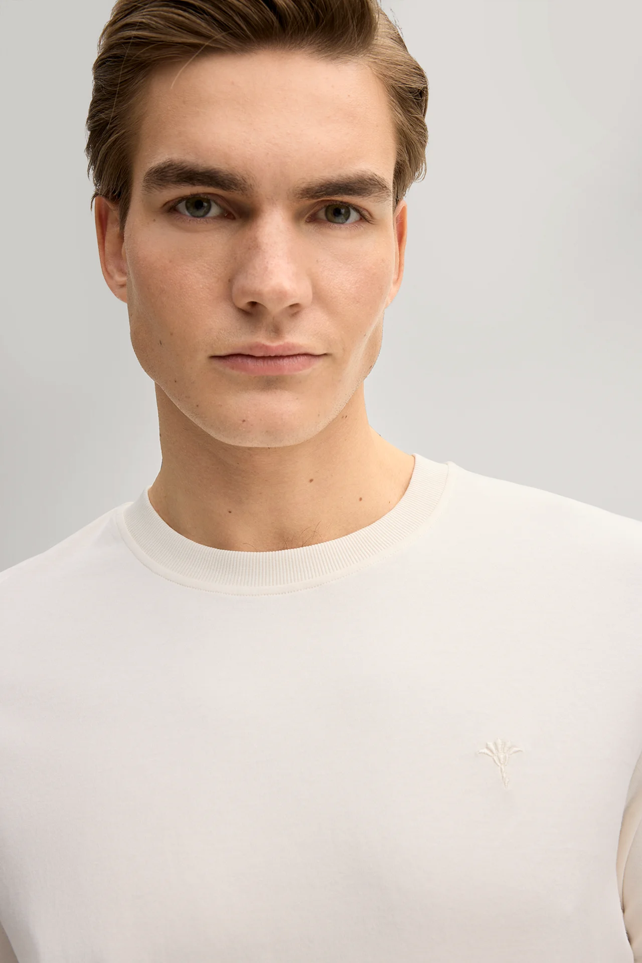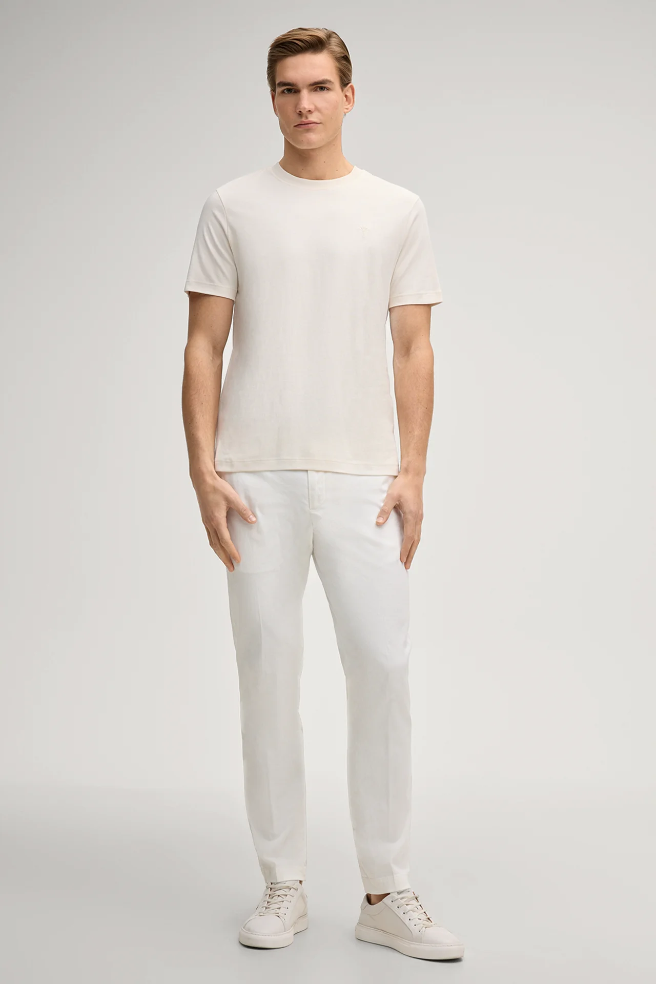 The Priamo T-shirt scores highly as a comfortable basic piece in pure cotton fabric. The cornflower stitching on the chest and a logo flag at the side seam make for signature accents. A ribbed round neck and modern fit round off the look.