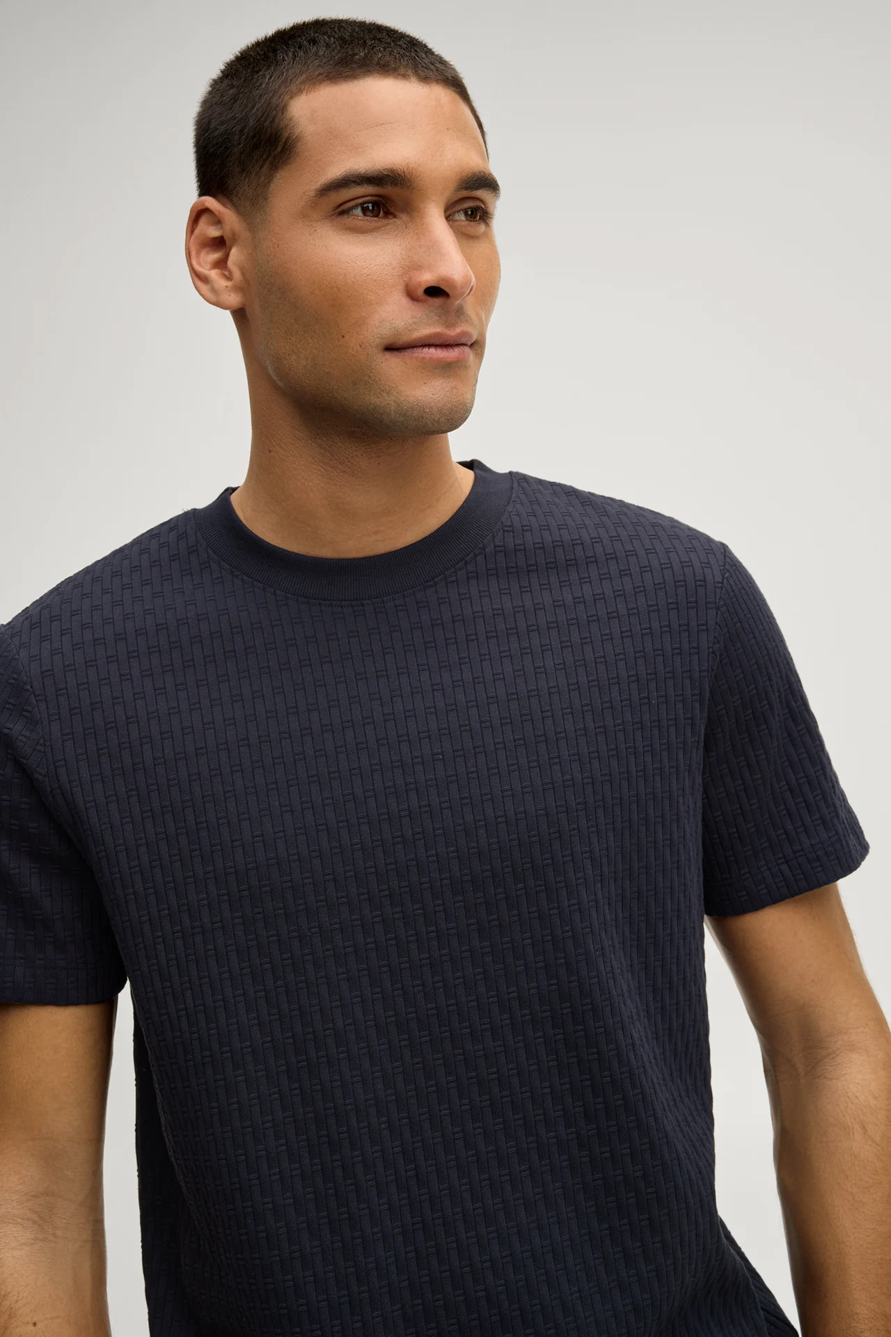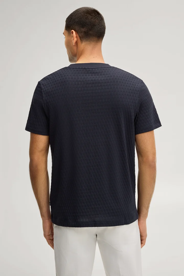 The Raulos T-shirt with its textured design is distinctive and versatile in styling. The ribbed round neckline and a label flag on the side provide emphasis. Double-stitched hems provide a comfortable finish. This essential item is made from pure cotton.