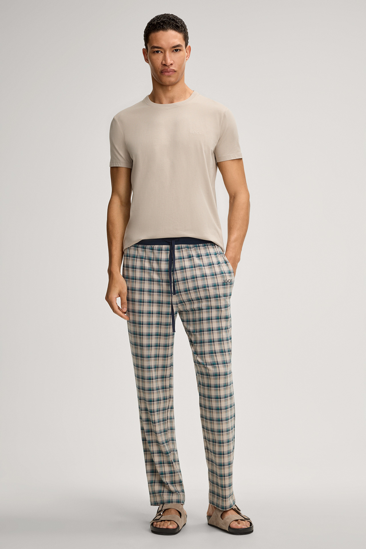 Checked stretch cotton marks out these joggers as a modern piece, comfortably complemented by the ribbed waistband with drawstring. The fine logo embroidery provides a stylish accent. The item coordinates perfectly with the matching T-shirts.