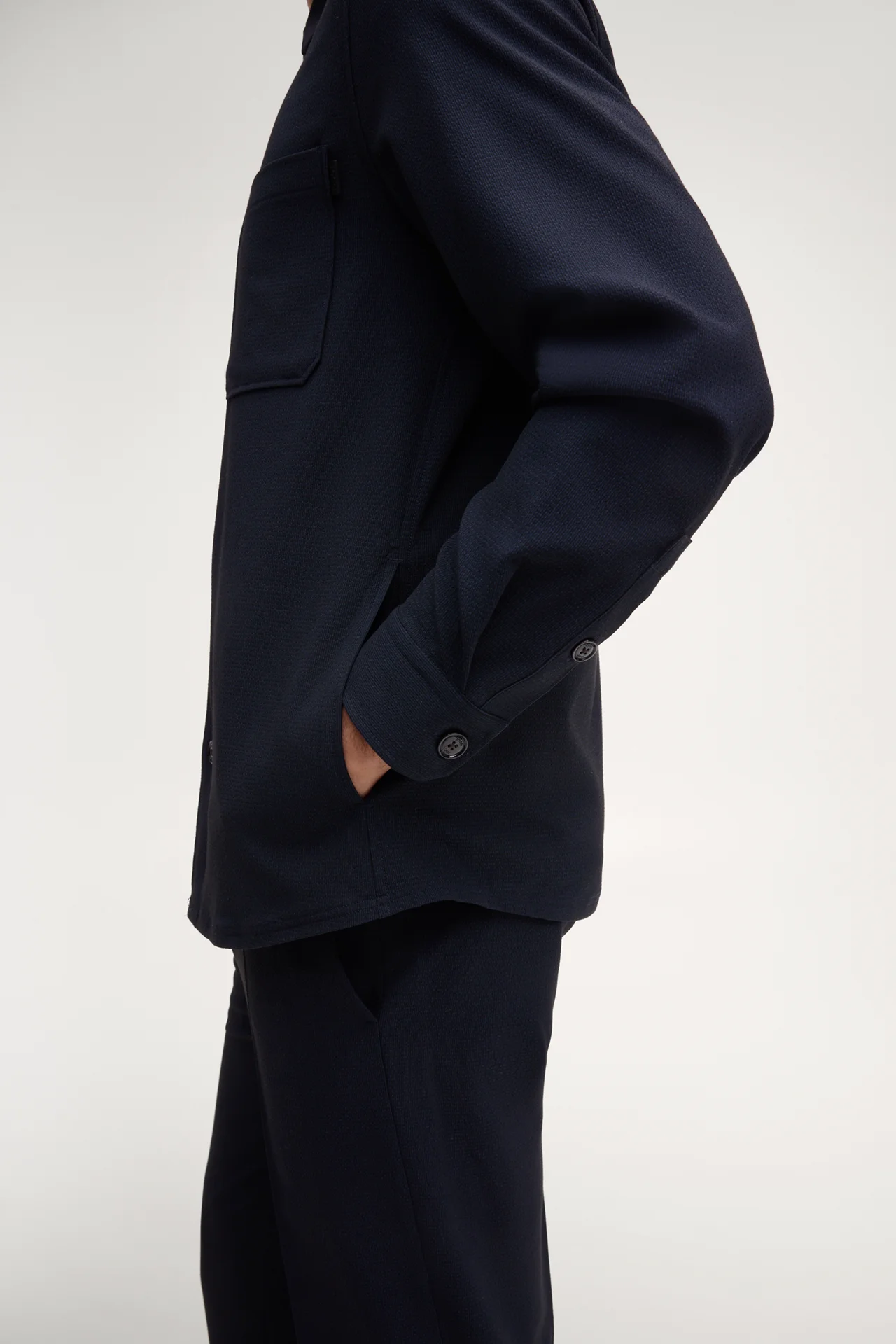 • Long sleeves with buttoned cuffs