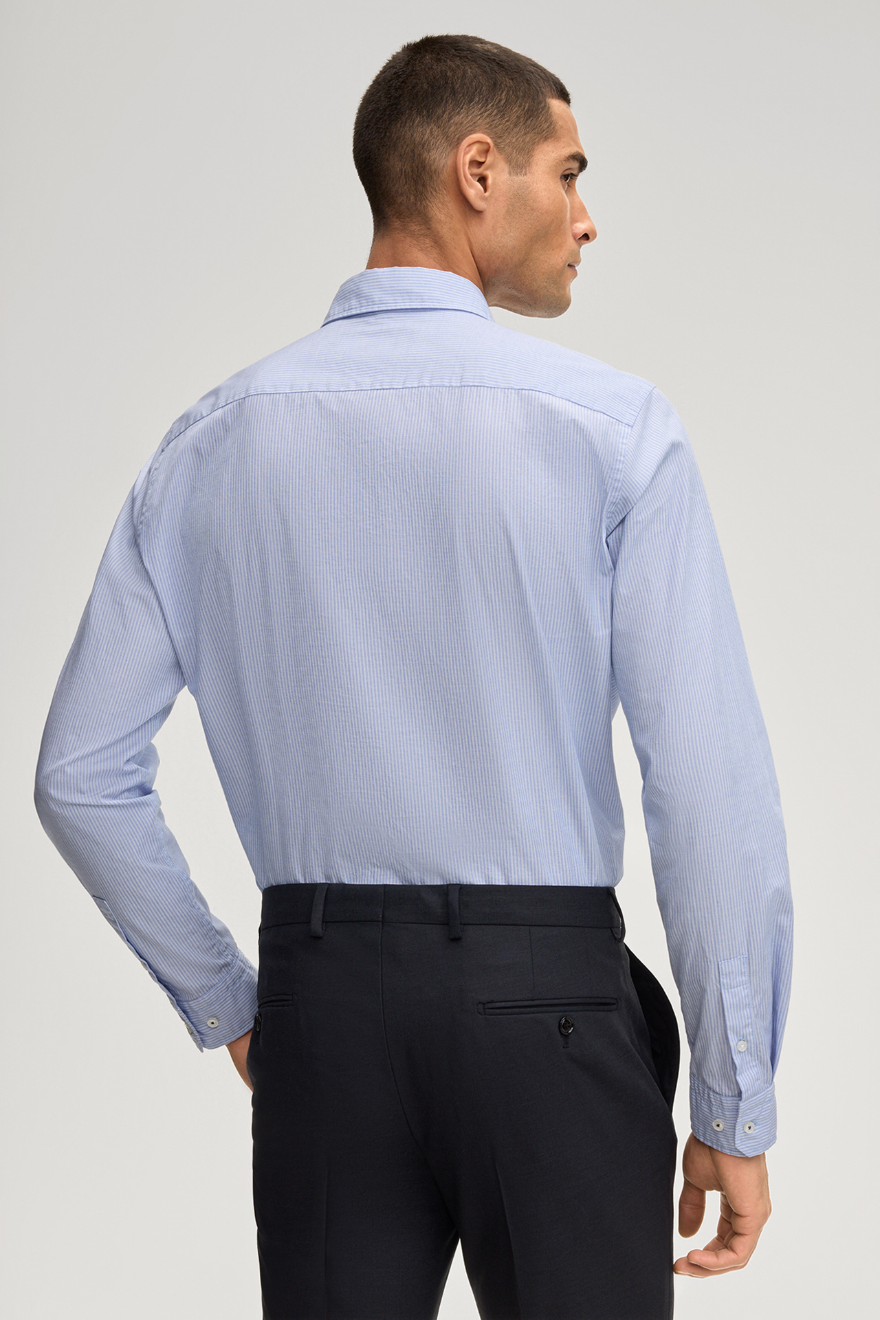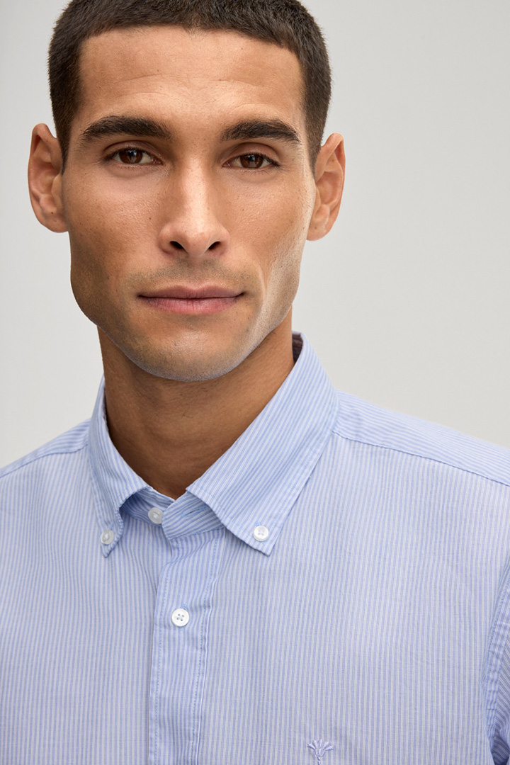 Pure cotton sets the Mike shirt apart as a comfortable piece for business and smart casual looks. The button-down collar and button placket lend a classic look, harmoniously complemented by cuffed sleeves. The slim silhouette creates a modern finish.