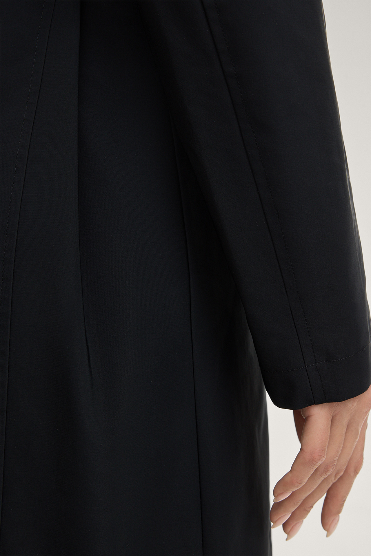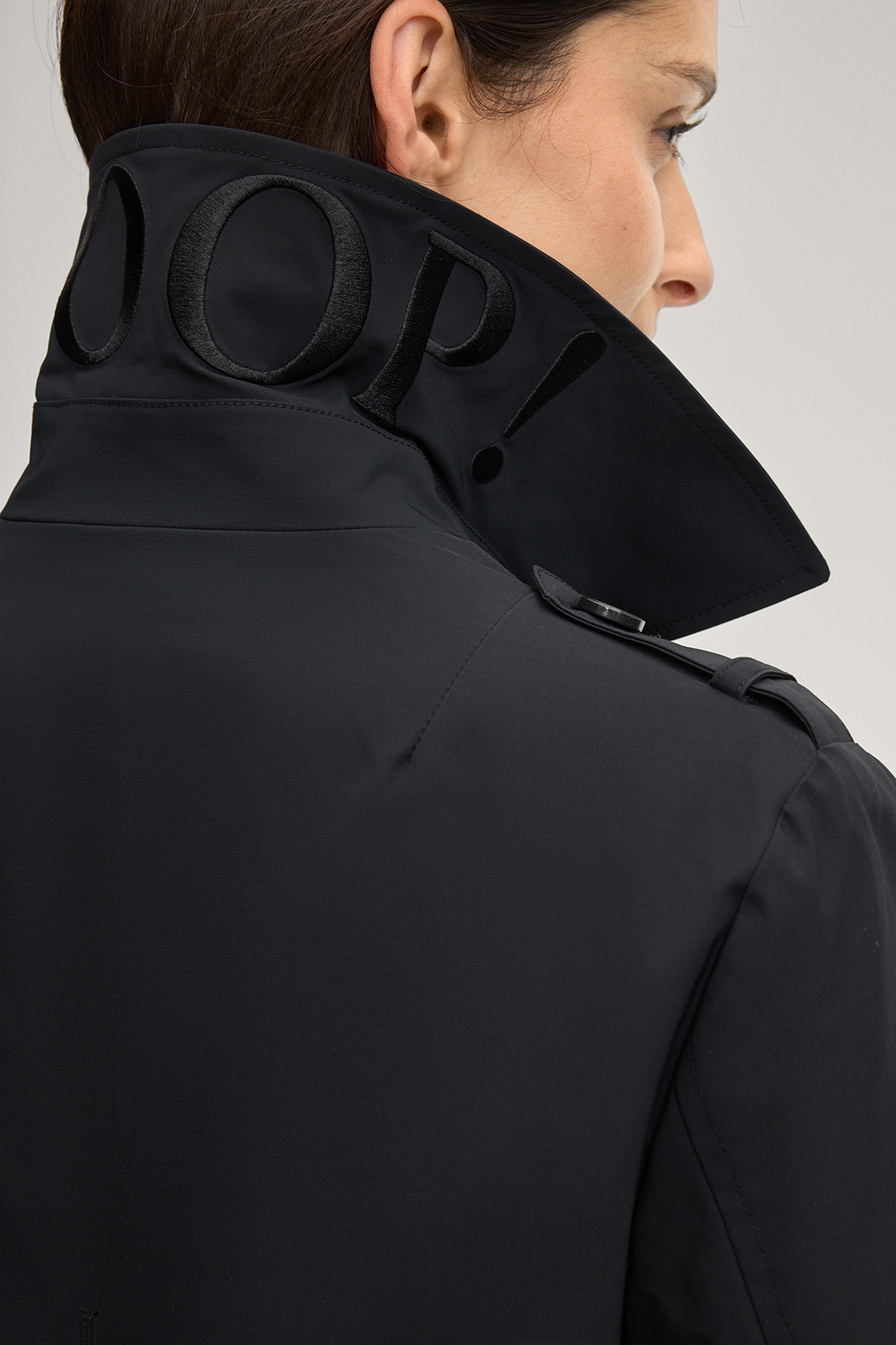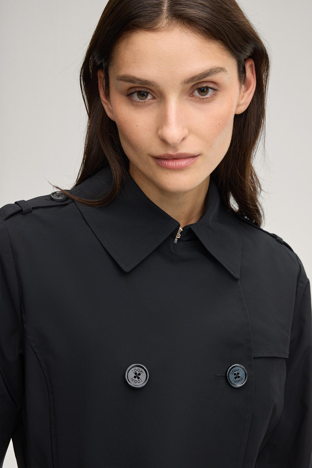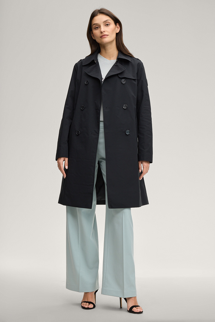 The Cindy trench coat will impress you with its classic look with turn-down collar, storm flap and buttoned tabs on the shoulders - harmoniously complemented by double-breasted buttons and a tie belt at the waist. A slit at the back and side slit pockets stylishly round off the piece.