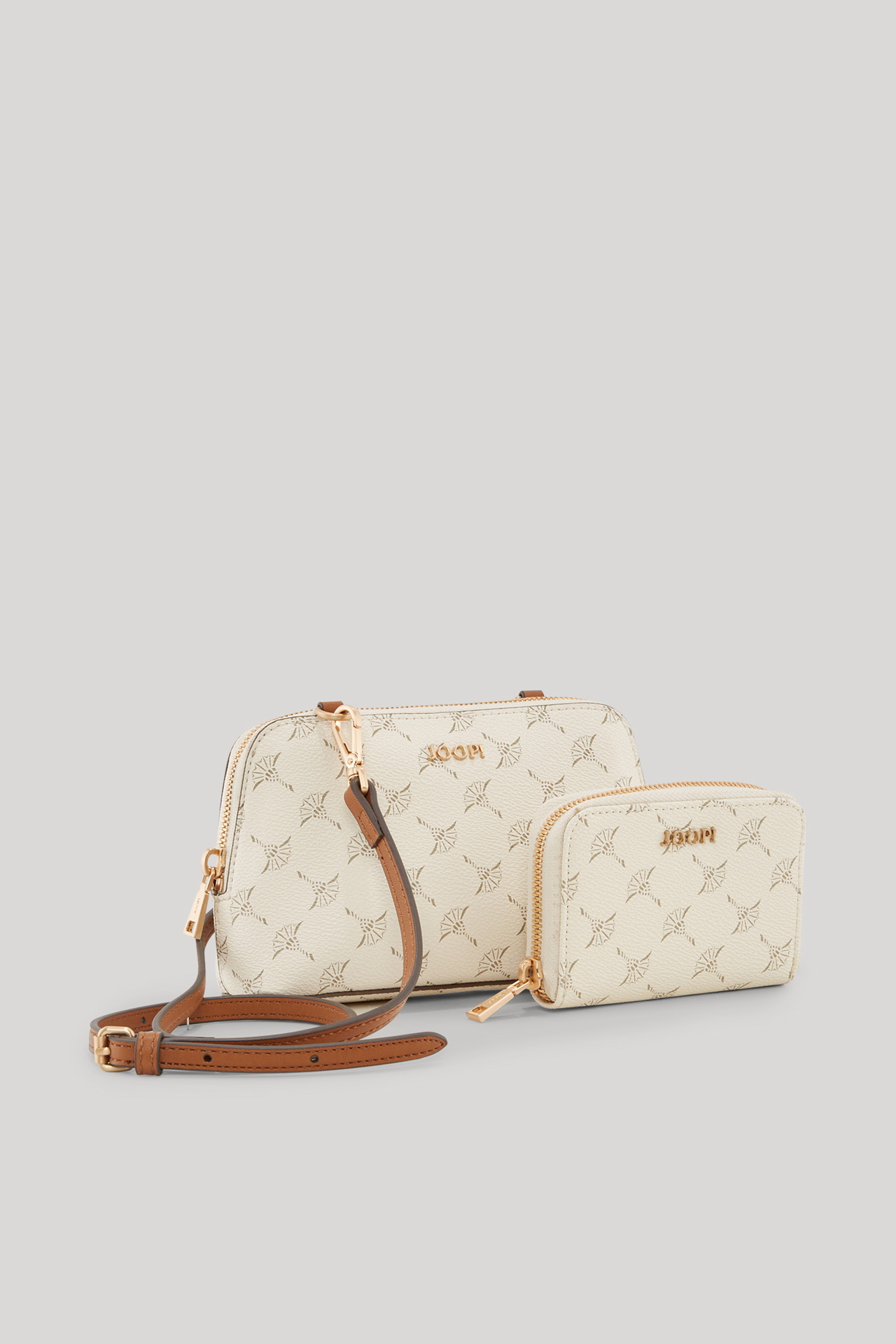The JOOP! Carolina Cortina gift box inspires with a feminine set consisting of a mini bag and wallet in a cornflower design. While the bag with its detachable shoulder strap, handy size and spacious inner compartment is the ideal partner for going out, the small wallet with all-round zip and inside pockets is a functional accessory. A finely grained faux leather fabric elegantly rounds off the gift duo.