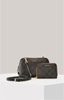 Inseparable duo in the signature brand design – Cortina Piazza Carolina gift box comprising a mini bag and zip wallet in a chessboard pattern with a cornflower signé as an eye-catching finish. The small bag goes just as well with a party dress as it does with your favourite look or denim, and can be worn in many different ways thanks to the detachable shoulder strap. The wallet scores highly with its five card slots and an RFID safe system.