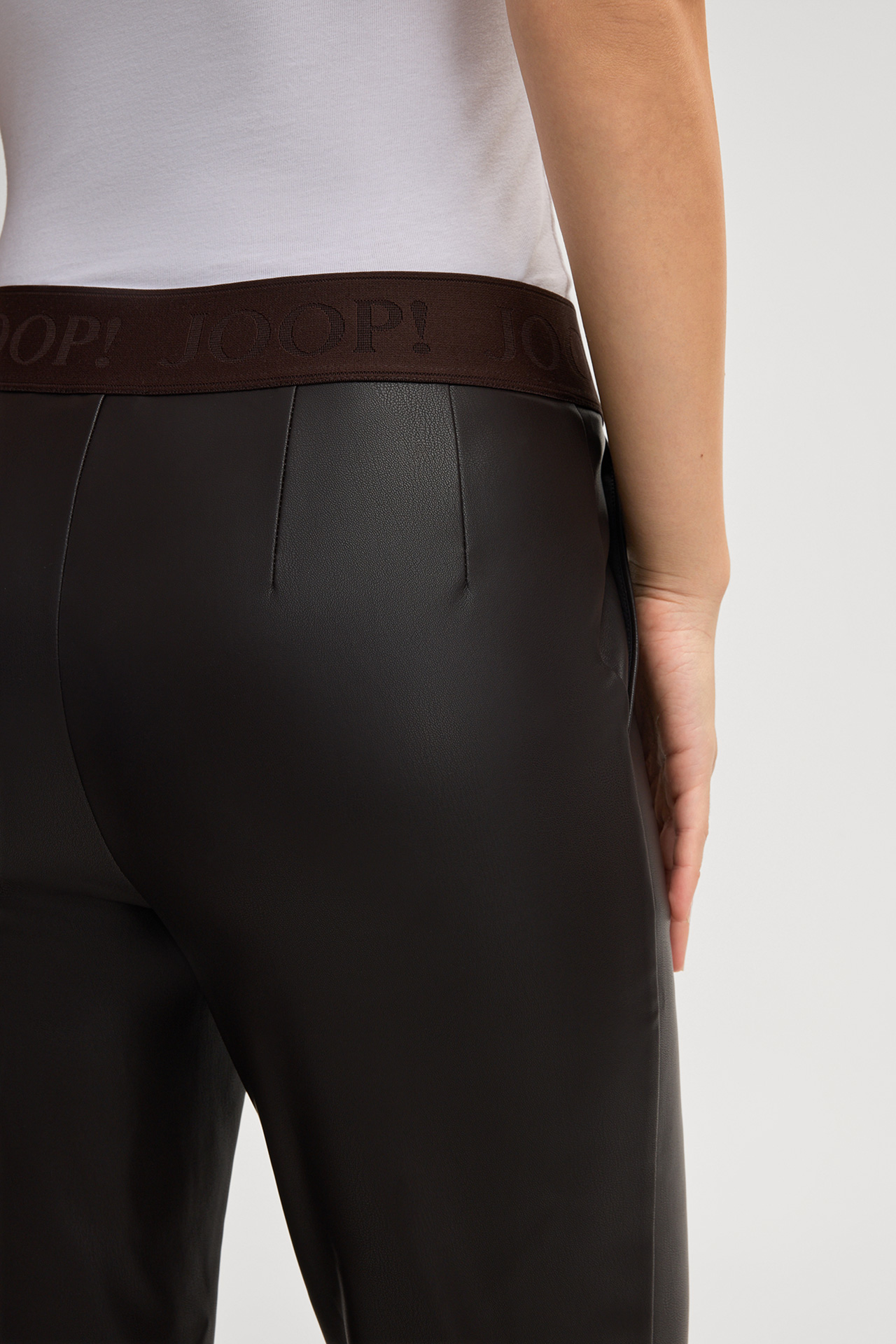 The Patricia trousers in faux leather are a great modern piece for creating a wide range of outfits. The inset waistband in logo design provides the signature twist, while a pleat front adds a classic accent. The slim, cropped silhouette rounds off the item to perfection.